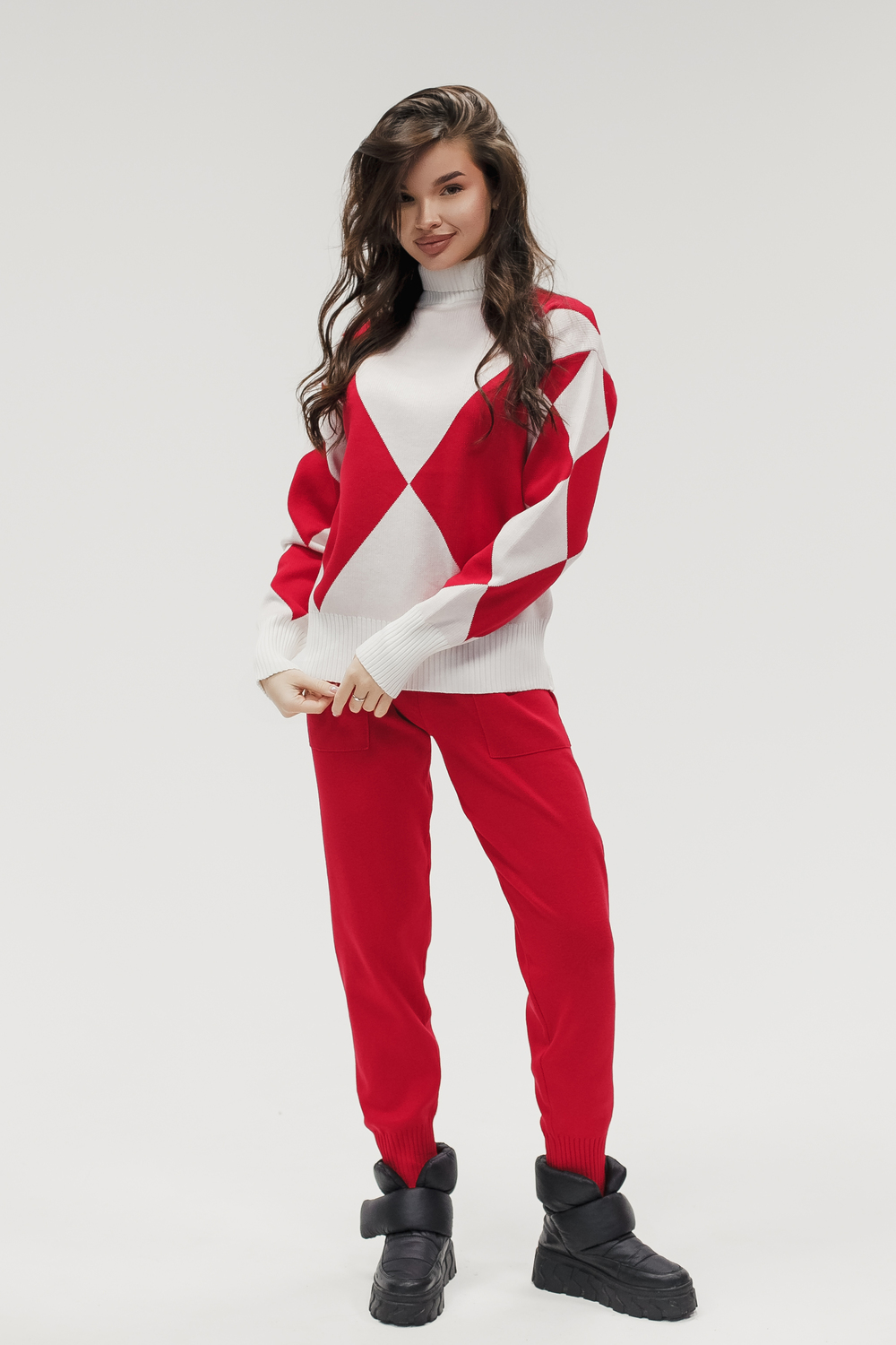 Этот тёплый женский вязаный костюм гармоничный комплект из свитера и брюк, выполненный из плотной, мягкой и эластичной пряжи (состав: 30% хлопок, 40% вискоза, 30% полиэстер), который надёжно сохраняет тепло и при этом приятно прилегает к телу. Свитер свободногос аккуратной воротниковой стойкой средней высоты визуально стройнит и обеспечивает дополнительную защиту от холода, манжеты и нижняя кромка обработаны резинкой для лучшей посадки и сохранения формы. Плечи оформлены со скосом или лёгким полупритёком для комфортной посадки на фигуры разных типов; брюки средней посадки с эластичным поясом и внутренней мягкой тесьмой или шнурком обеспечивают индивидуальную регулировку, прямой или слегка зауженный книзу силуэт свободно сидит по бедру и книзу, благодаря эластичности материала изделие тянется и адаптируется под параметры от 40 до 46 размера и комфортно смотрится на росте до 160 см, при этом посадка и длина оптимизированы под невысокий рост брюки не требуют сильной подшивки, а длина пуловера рассчитана так, чтобы сочетаться с верхней одеждой; в дизайне предусмотрены функциональные детали: скрытые боковые или накладные карманы в брюках, аккуратные декоративные швы или узорная вязка на передней части пуловера, что добавляет текстуре и визуального интереса, при этом декоративность не мешает повседневному использованию; палитра нейтральные базовые оттенки (беж, серый, графит, тёмно-синий) и несколько насыщенных цветовых акцентов (бордо, изумруд, горчичный), которые легко сочетаются с верхней одеждой и аксессуарами; материал и плотная вязка делают костюм универсальным для осенне-зимнего периода и прохладной весны он отлично подойдёт как для прогулок и поездок, так и для уютных домашних вечеров или неофициальных встреч; уход: рекомендована деликатная стирка руками или в машине на щадящем режиме при температуре не выше 30C, сушить в расправленном виде на горизонтальной поверхности, не отбеливать, при необходимости возможна бережная химчистка; благодаря продуманной посадке и использованию качественной пряжи комплект сохраняет форму и внешний вид даже при регулярной носке, подчёркивает женственность без лишней вычурности и станет практичным элементом гардероба тех, кто ценит комфорт, тепло и стиль. Цвет: коричневый;голубой;красный;черный; Материал: вязаный трикотаж;вязаный трикотаж; Состав: 30% хлопок, 40% вискоза, 30% полиэстер.