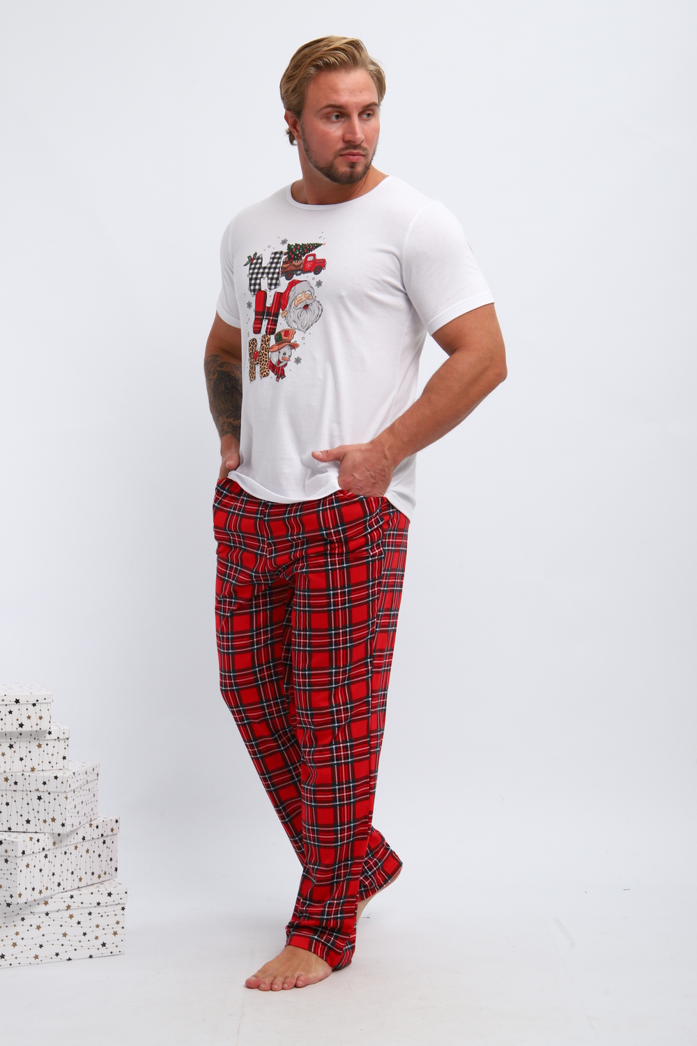 Стильный и модный набор для дома, который станет отличным выбором для мужчин. Этот комплект создан с учетом всех современных тенденций, обеспечивая комфорт и удобство повседневной носки. Трикотажный материал приятно ощущается на коже, благодаря чему костюм идеально подходит для отдыха и сна. Этот красивый пижамный комплект включает в себя уютную футболку и брюки. Мягкий трикотаж обеспечивает свободу движений и комфорт в любое время суток. Одежда выполнена в ярком стиле, чтобы вы чувствовали себя привлекательно даже дома. Особенным украшением комплекта является оригинальный новогодний принт, создающий милый и игривый образ.
