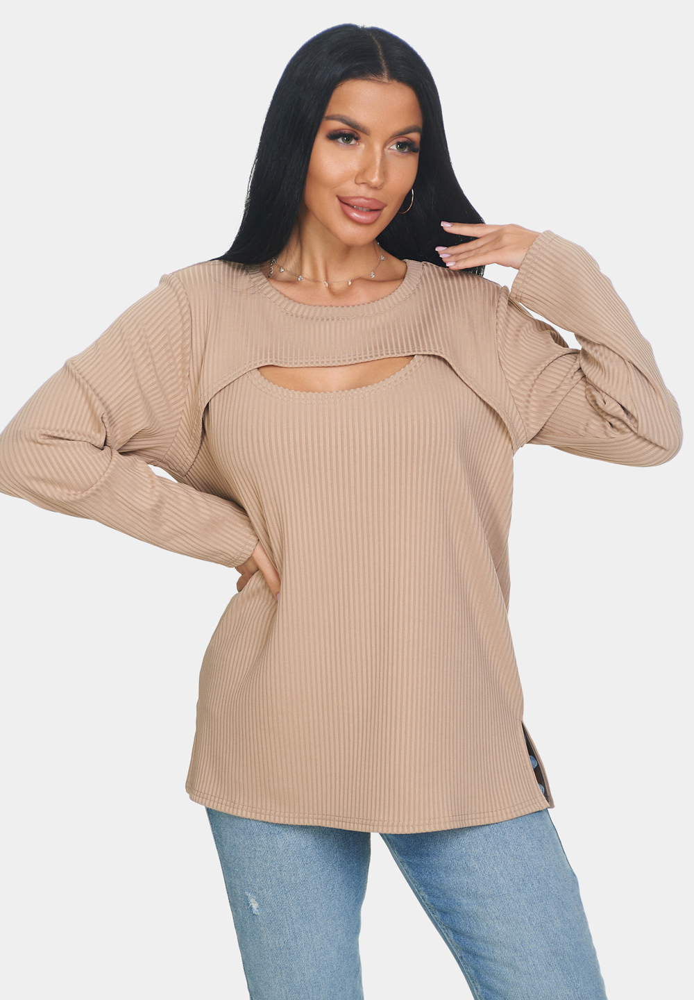 Лонгслив из мягкой лапши, созданный подчеркнуть ваш силуэт и подарить комфорт на каждый день. Эффектный вырез добавляет изюминку образу, а свободный крой обеспечивает идеальную посадку. Идеален для casual-луков и уверенного стильного настроения Цвет: зелёный;бежевый;черный; Материал: лапша;лапша; Состав: 95% ПЭ, 5% эластан.