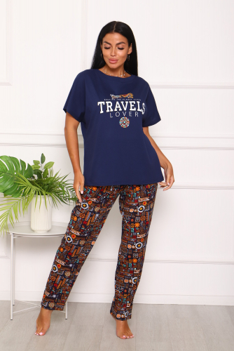 Этот легкий летний трикотажный костюм от бренда Jexy воплощение комфорта и стиля для домашних и повседневных занятий. Брючный костюм женский, создан с учетом потребностей женщин всех размеров, включая категорию больших размеров, он так же идеально подходит для невысоких женщин и беременных, благодаря свободному крою. Костюм женский летний нарядный выполнен из мягкого и приятного на ощупь хлопка, что делает его идеальным выбором для жаркой погоды. Материал позволяет коже дышать, создавая ощущение прохлады даже в самый знойный день лета. Вы можете наслаждаться комфортом этого комплекта дома или выйти в нём на прогулку по морскому побережью. Легкость ткани придаёт дополнительное удобство во время долгого ношения. Брюки с резинкой на талии обеспечивают идеальную посадку и свободу движений. Комплект большого размера включает в себя штаны и футболку с коротким рукавом, которая не стесняет движений рук. Эта модель трикотажного костюма станет вашей любимой домашней одеждой. Комплект двойка включает в себя футболку с ярким принтом и прямые брюки, создавая стильный и гармоничный образ. Свободный крой повседневного костюма заслуживает отдельного упоминания. Костюм из легкой хлопковой ткани подчеркивает женственные линии тела, не причиняя дискомфорта и не ограничивая движения. Одежда оверсайз давно получила высокую оценку за способность скрывать недостатки фигуры и подчеркивать её достоинства. Короткий рукав делает этот брючный костюм идеальным вариантом на лето: он создает ощущение лёгкости и воздушности даже в самые жаркие дни. Позвольте себе наслаждаться каждым моментом вашей жизни в этом великолепном трикотажном костюме, который подчеркнет вашу индивидуальность и подарит незабываемые ощущения.