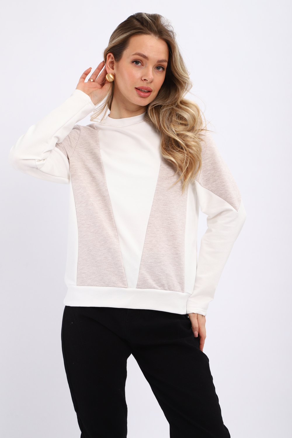Универсальность: Свитшот легко сочетается с различными предметами гардероба от джинсов до юбок и брюк. Он подходит как для повседневной носки, так и для создания более формальных образов.