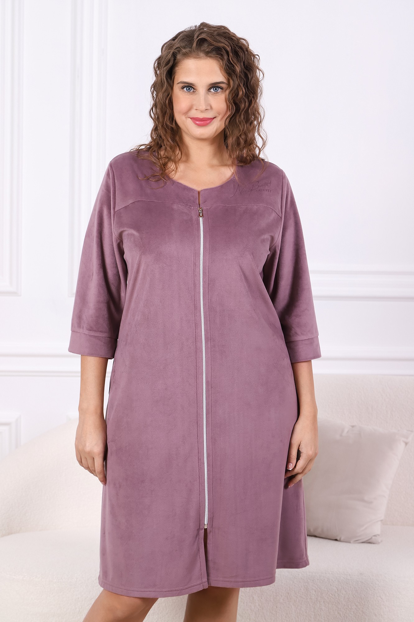 Халат женский из гладкокрашенного трикотажного полотна «вельмонд», свободного