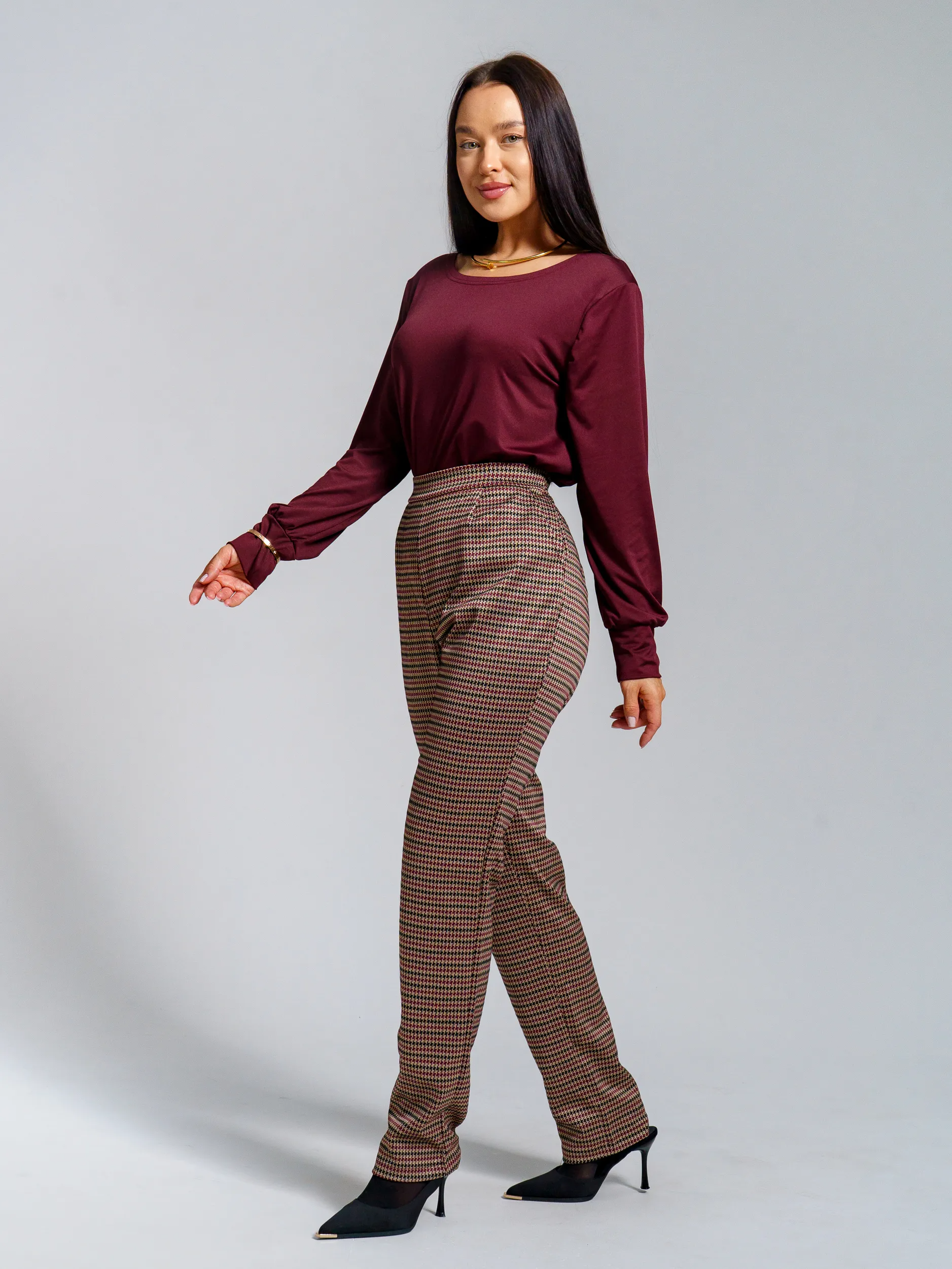 Камелия(бордо)Брюки р.48, 95% п/э, 5% лайкра