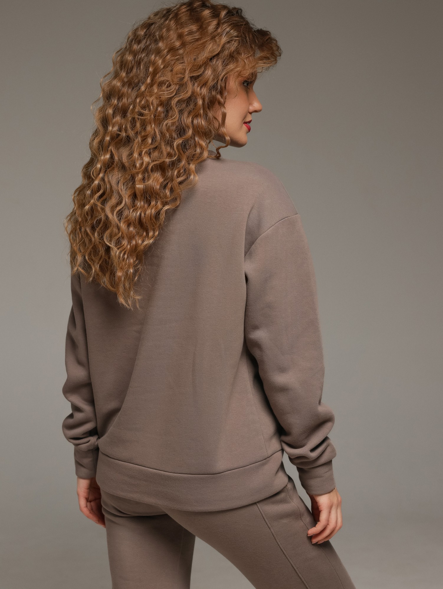 Костюм молодежный из гладкокрашеного трикотажного полотна «футер- трехнитка», состоящий из джемпера и брюк овальной формы, обработанной втачной планкой и притачным поясом по низу. Рукава – с притачными манжетами. Манжеты, планка горловины и пояс выполнены из полотна «кашкорсе» такого же цвета, как и основной материал. На полочке застрочены декоративные складочки-защипы, расположенные симметрично относительно линии центра. Брюки – длинные, на притачном поясе с эластичной тесьмой внутри и манжетами по низу. Передние половины – из двух частей каждая, со смещением соединтельных швов в сторону боковых срезов. Соединительные швы передних половин обработаны с карманами. Пояс и манжеты выполнены из трикотажного полотна «кашкорсе».