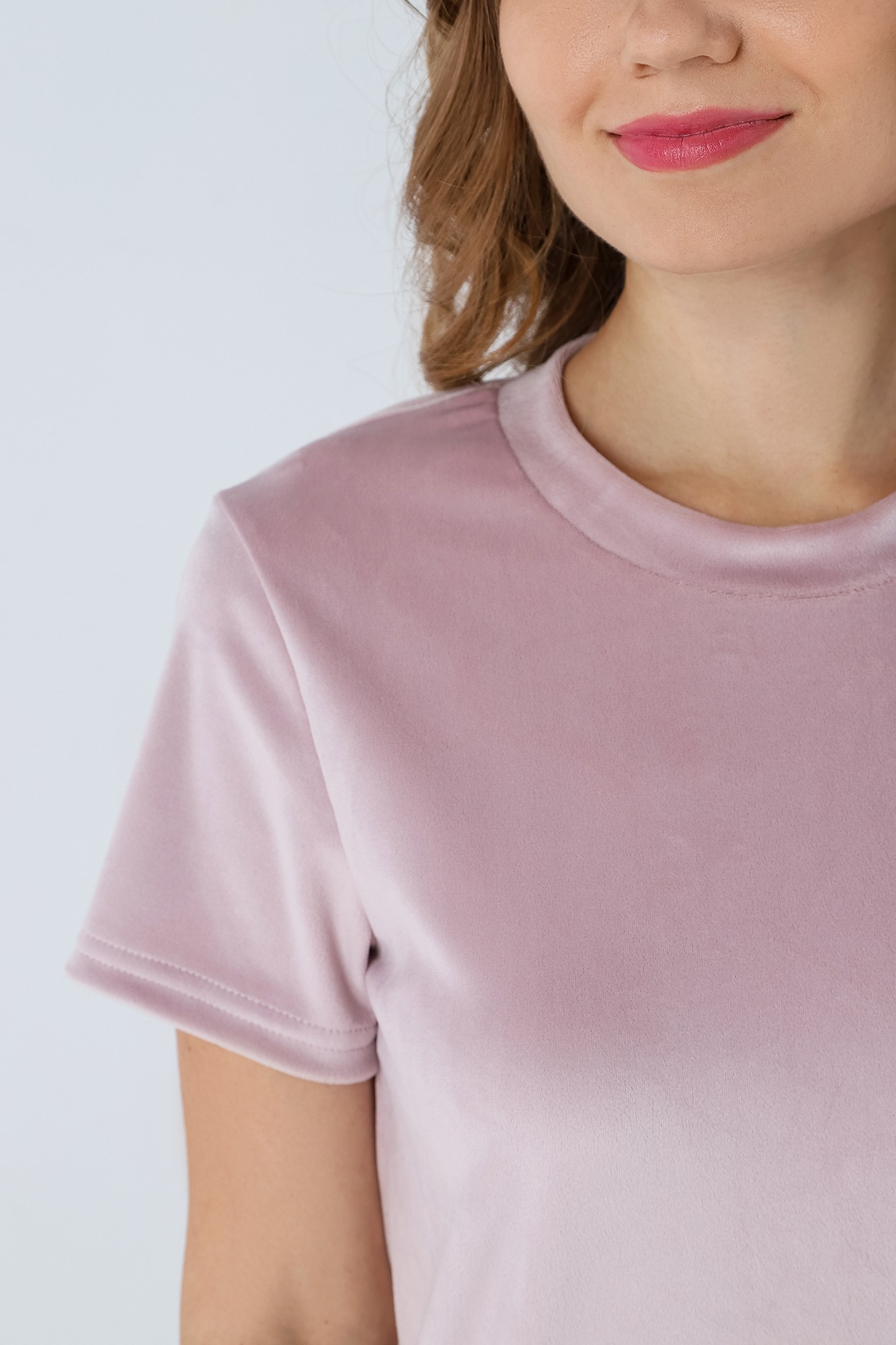 Костюм молодежный из трикотажного полотна «велюр-стрейч», состоящий из футболки и брюк.