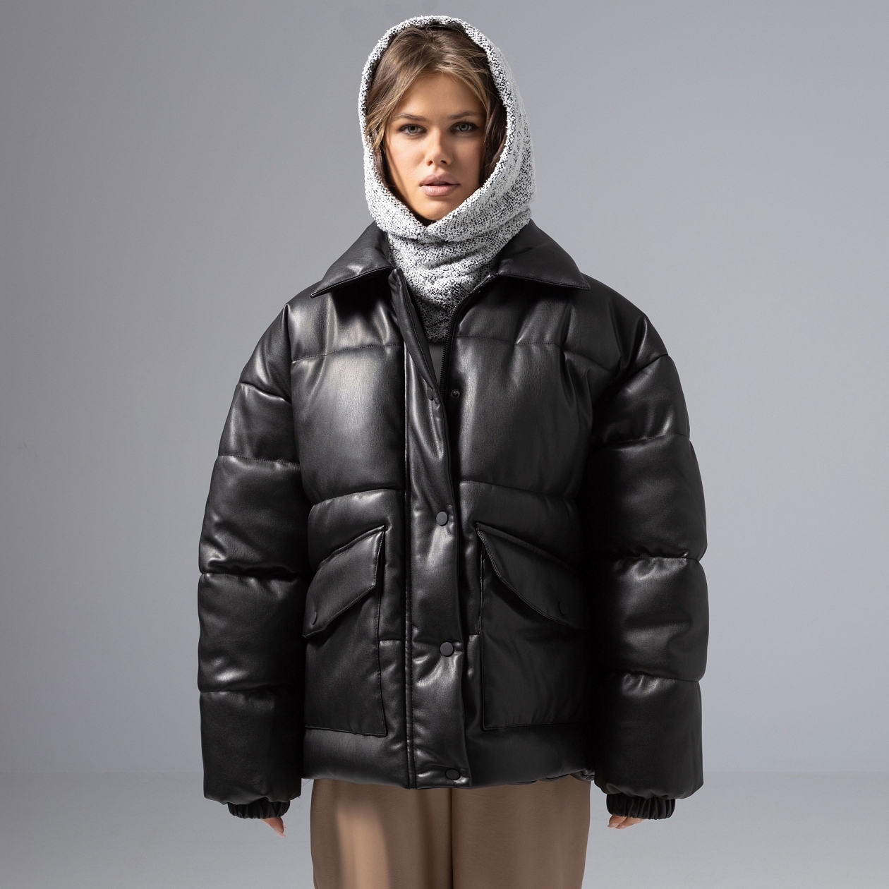 Городская леди таит свои чувства под уютным капюшоном ЧАРУТТИ, выбирает маршрут без оглядки и никогда не теряет своего шарма. Мягкая текстура, аристократичный серый – просто надень, и весь город подчинен тебе. Капюшон-балаклава из вязаного трикотажа легко драпируется, плотно прилегает, защищая от ветра. Можно прикрывать лицо и нет. Идеально для городских прогулок и дерзких образов с настроением свободы. Глубина изделия 30 см, двусторонний.