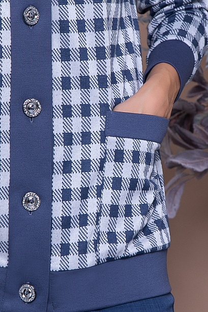 Кардиган свободного силуэта из жаккардового трикотажного полотна в клетку с однотонной отделкой.