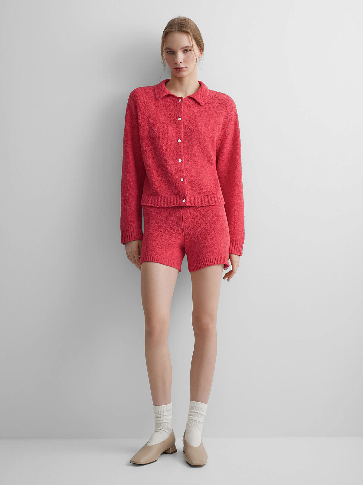 Кардиган из хлопка букле, красный