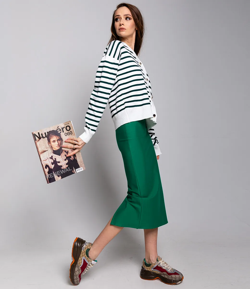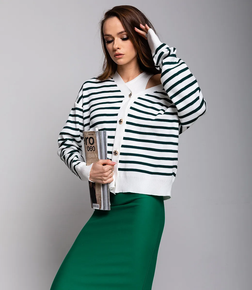 Модный и уютный кардиган в полоску.