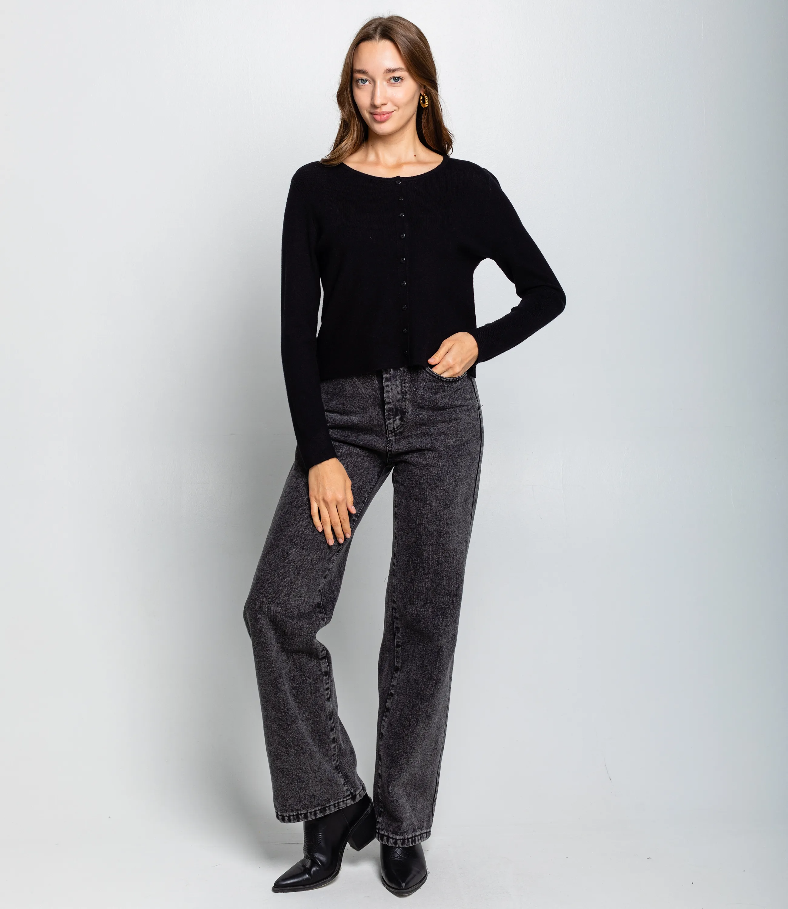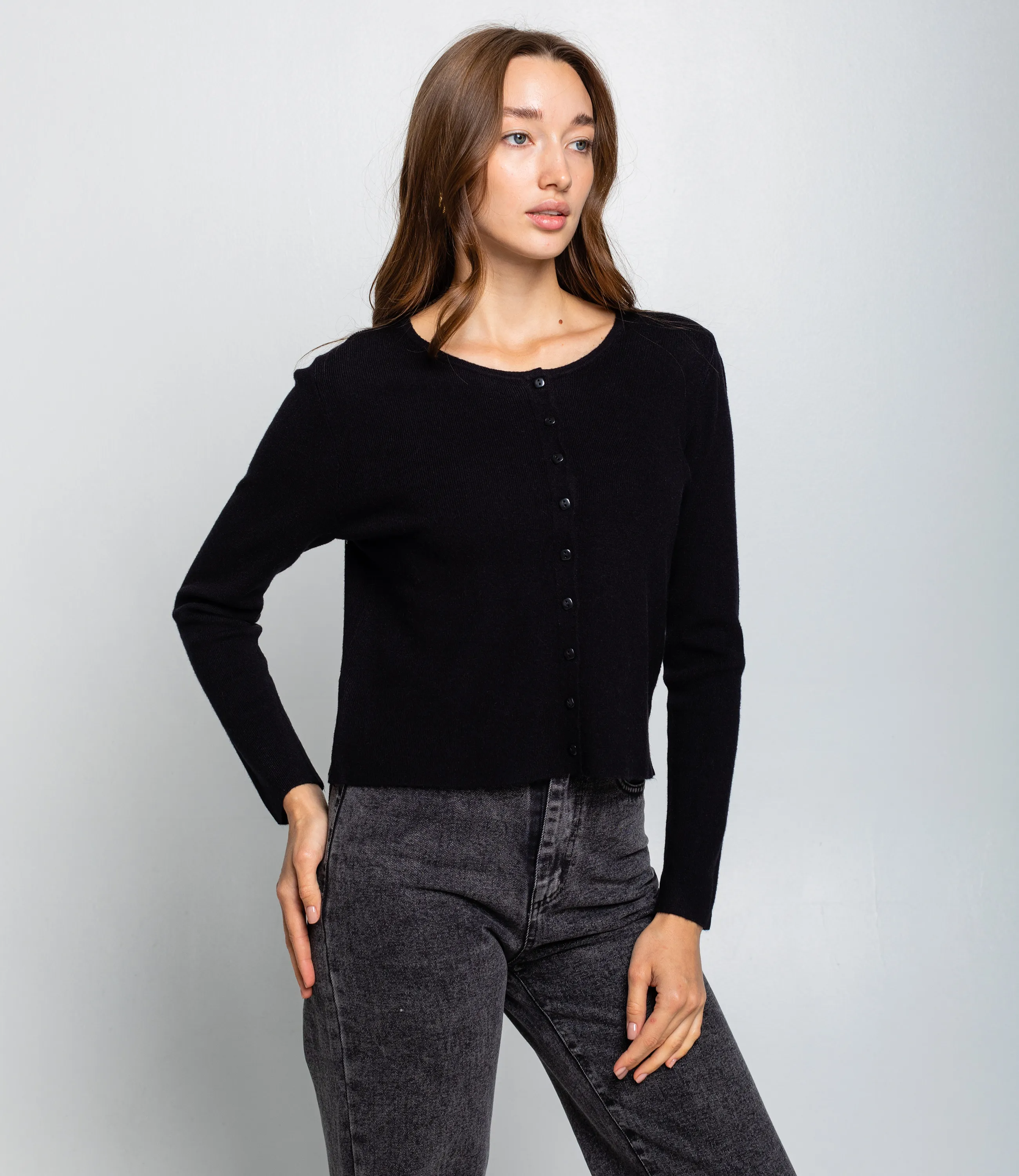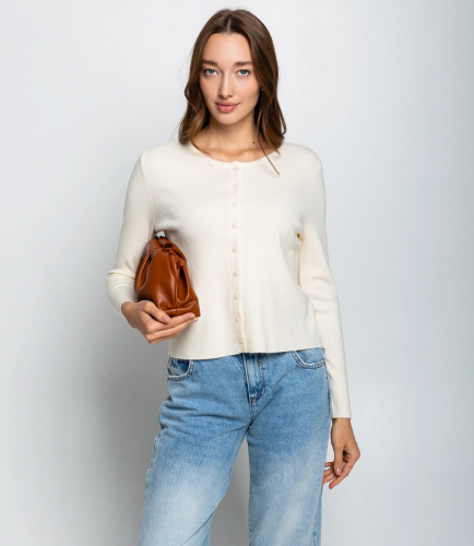 Кардиган — это часть гардероба, которая подчёркивает женственность и утончённость каждой покупательницы. Модель выполнена из мягкого трикотажа ровной текстуры прямого кроя, длина до талии делает изделие универсальным и удобным для сочетания с разной одеждой. Воротник круглый, спереди кардиган закрывается на аккуратные небольшие пуговицы по всей длине, рукава длинные и слегка прилегающие — простота и лаконичность дизайна позволяют использовать модель и в повседневных, и в деловых образах. Для пошива использована ткань 65% хлопок, 30% полиэстер, 5% эластан: хлопок обеспечивает комфорт и приятные тактильные ощущения, полиэстер придаёт прочность и стойкость цвета, а эластан гарантирует идеальную посадку и сохранение формы. Трикотаж лёгкий, но плотный, не теряет внешнего вида после множества стирок, цвета насыщенные и соответствуют фотографиям в карточке товара. Для оптовых закупщиков это стабильная и востребованная позиция с высокой оборачиваемостью: универсальный крой упрощает формирование размерного ряда, качественная отделка снижает процент рекламаций, а стильный, нейтральный дизайн легко интегрируется в разные ценовые категории. Рост модели: 168, параметры: 85-63-92.