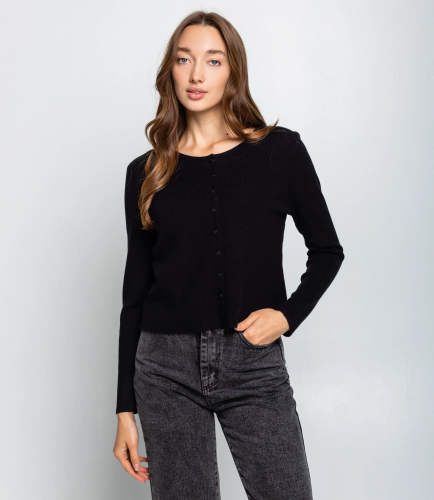 Кардиган — это часть гардероба, которая подчёркивает женственность и утончённость каждой покупательницы. Модель выполнена из мягкого трикотажа ровной текстуры прямого кроя, длина до талии делает изделие универсальным и удобным для сочетания с разной одеждой. Воротник круглый, спереди кардиган закрывается на аккуратные небольшие пуговицы по всей длине, рукава длинные и слегка прилегающие — простота и лаконичность дизайна позволяют использовать модель и в повседневных, и в деловых образах. Для пошива использована ткань 65% хлопок, 30% полиэстер, 5% эластан: хлопок обеспечивает комфорт и приятные тактильные ощущения, полиэстер придаёт прочность и стойкость цвета, а эластан гарантирует идеальную посадку и сохранение формы. Трикотаж лёгкий, но плотный, не теряет внешнего вида после множества стирок, цвета насыщенные и соответствуют фотографиям в карточке товара. Для оптовых закупщиков это стабильная и востребованная позиция с высокой оборачиваемостью: универсальный крой упрощает формирование размерного ряда, качественная отделка снижает процент рекламаций, а стильный, нейтральный дизайн легко интегрируется в разные ценовые категории. Рост модели: 168, параметры: 85-63-92.