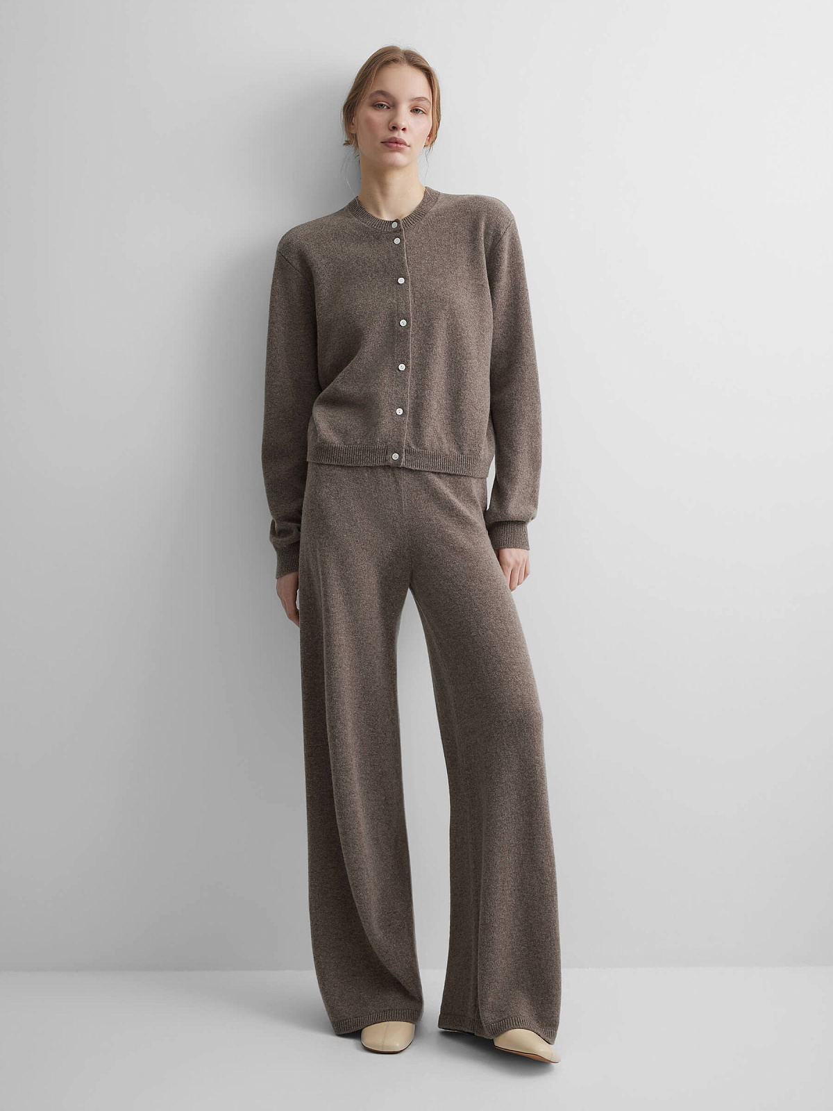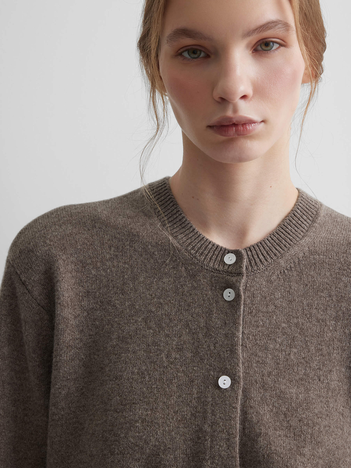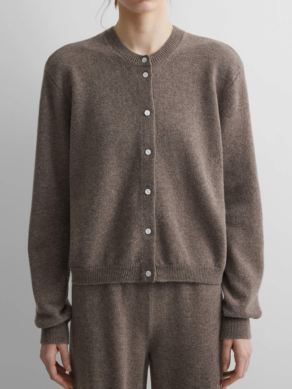 Кардиган на пуговицах из 100% мериноса, коричневый меланж