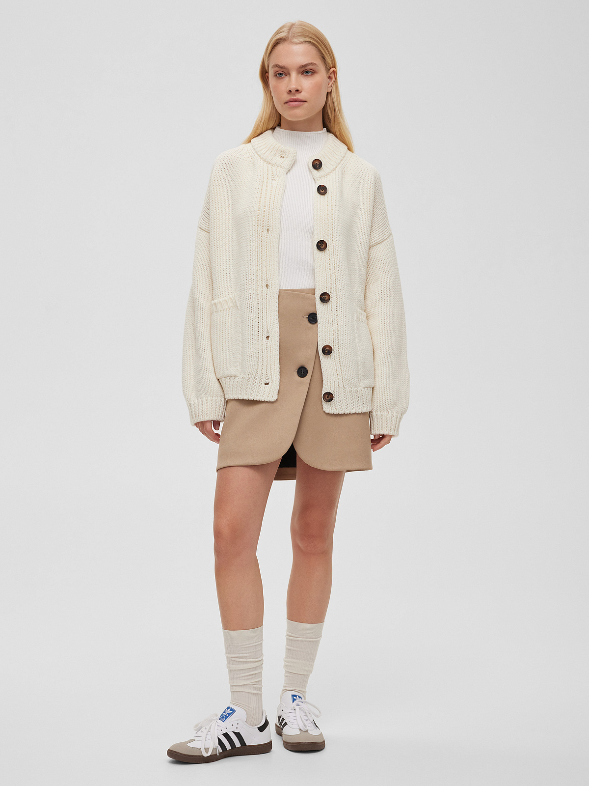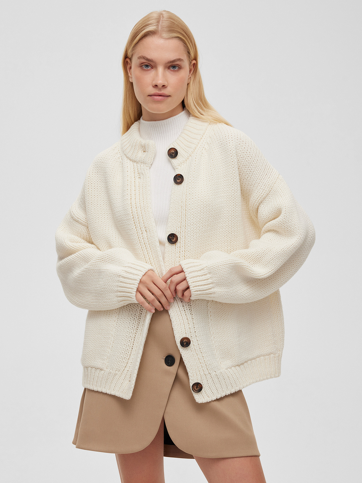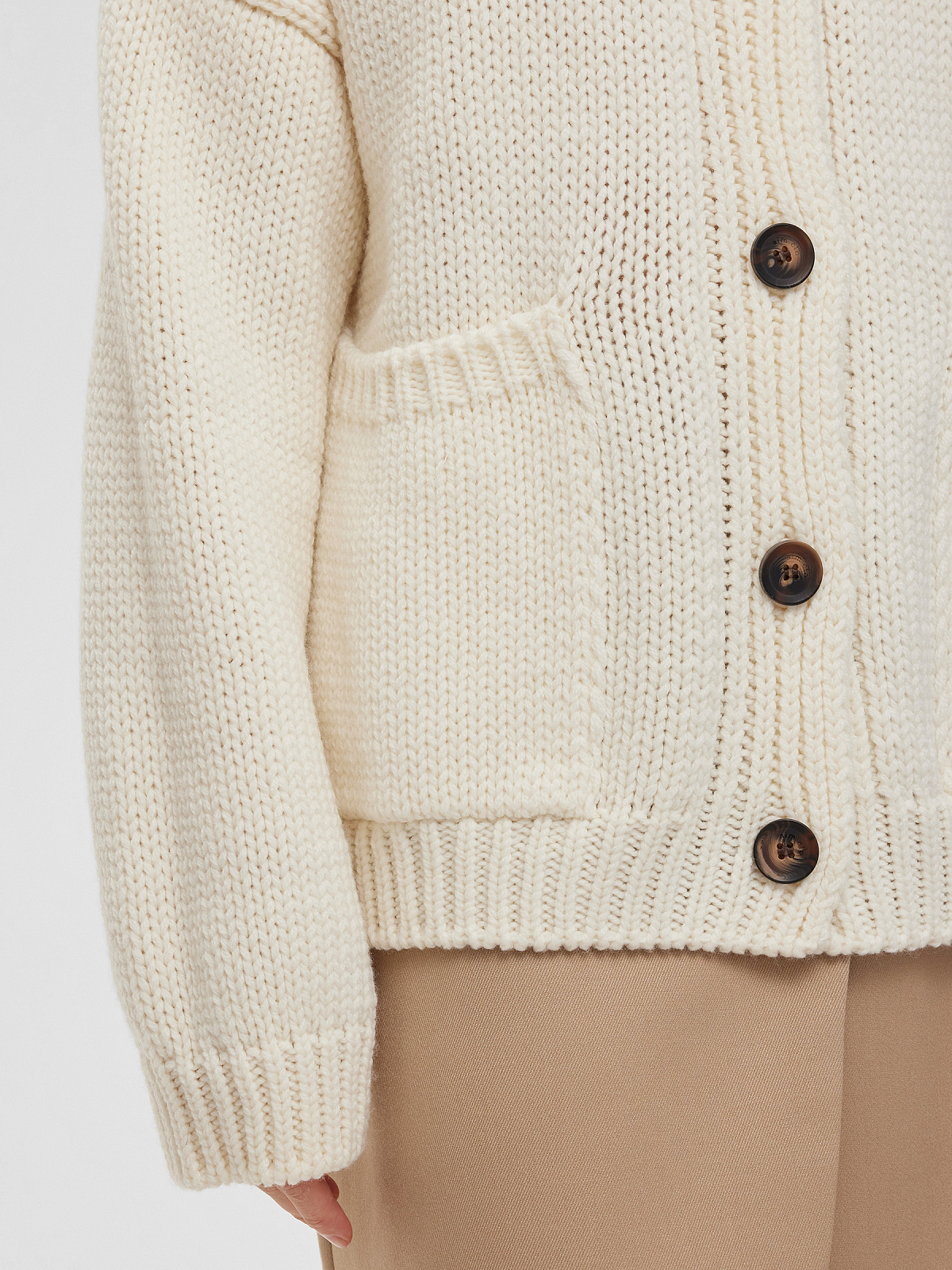 РОЗНИЧНАЯ ЦЕНА 8750руб. Кардиган свободного кроя крупной вязки, накладные карманы и застежка на пуговицы по переду, спущенная линия плеча.
