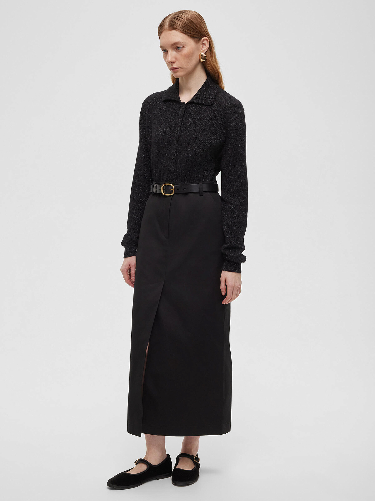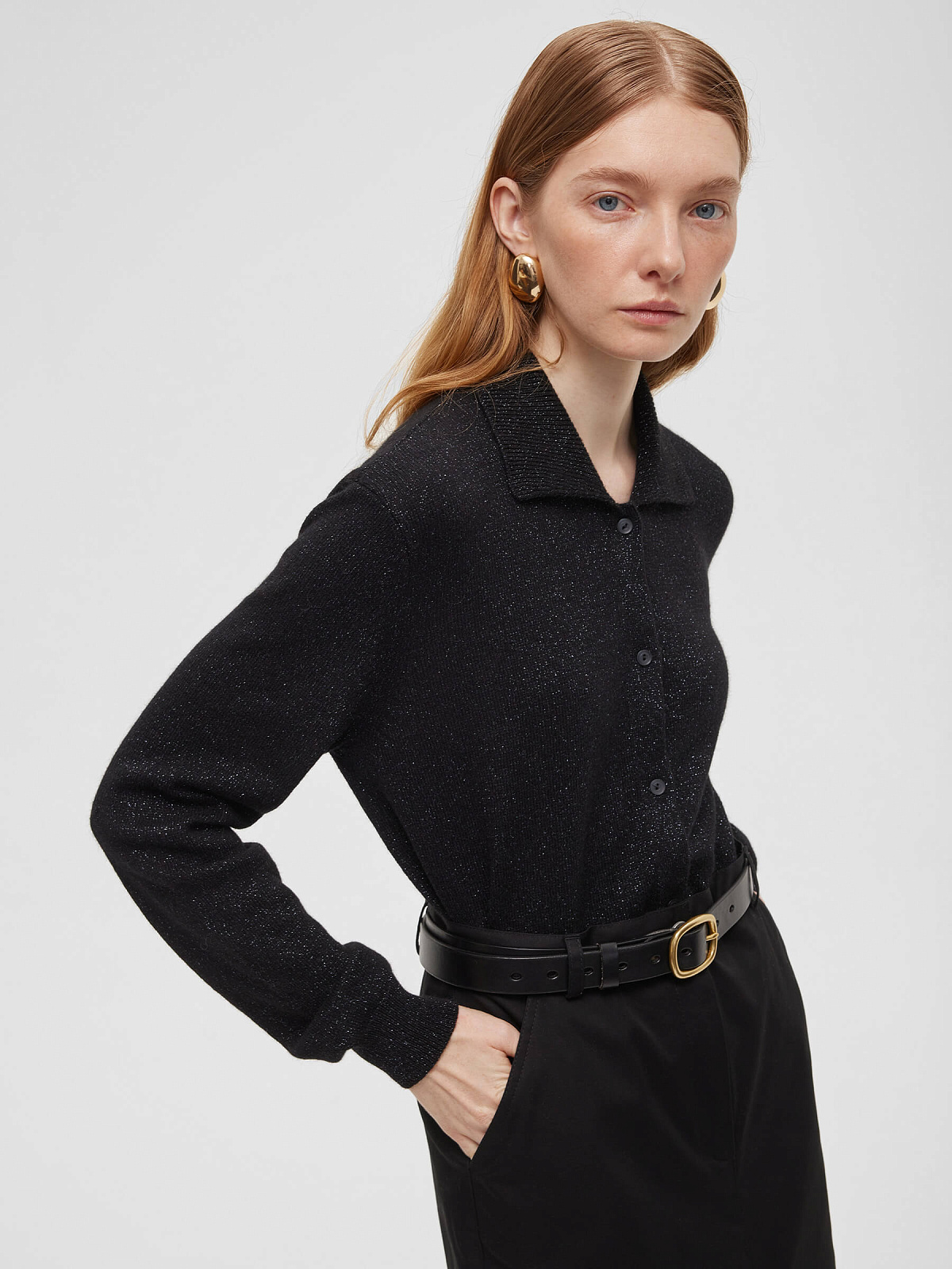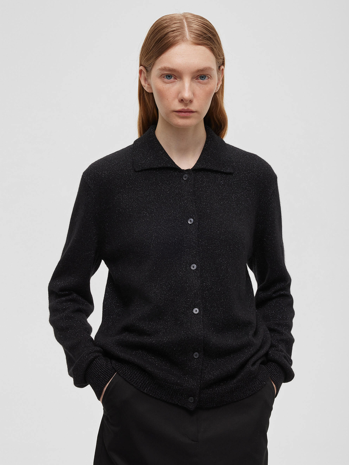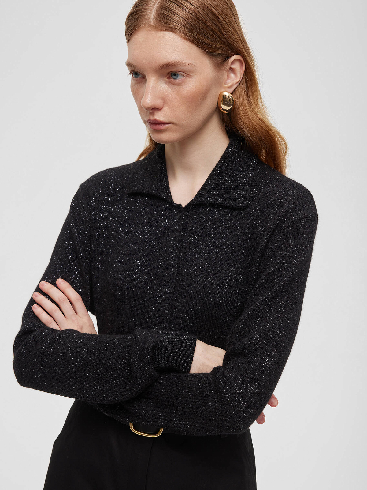 Кардиган с воротником с ангорой с люрексом, черный