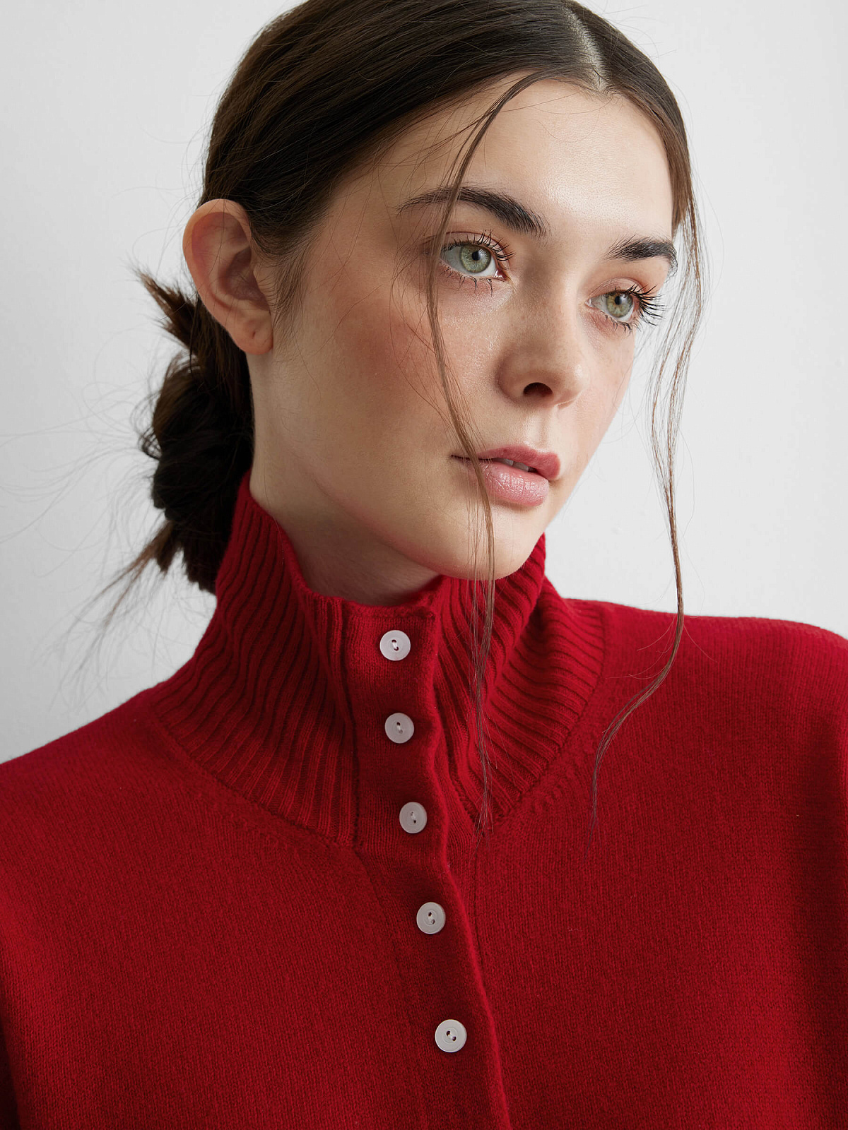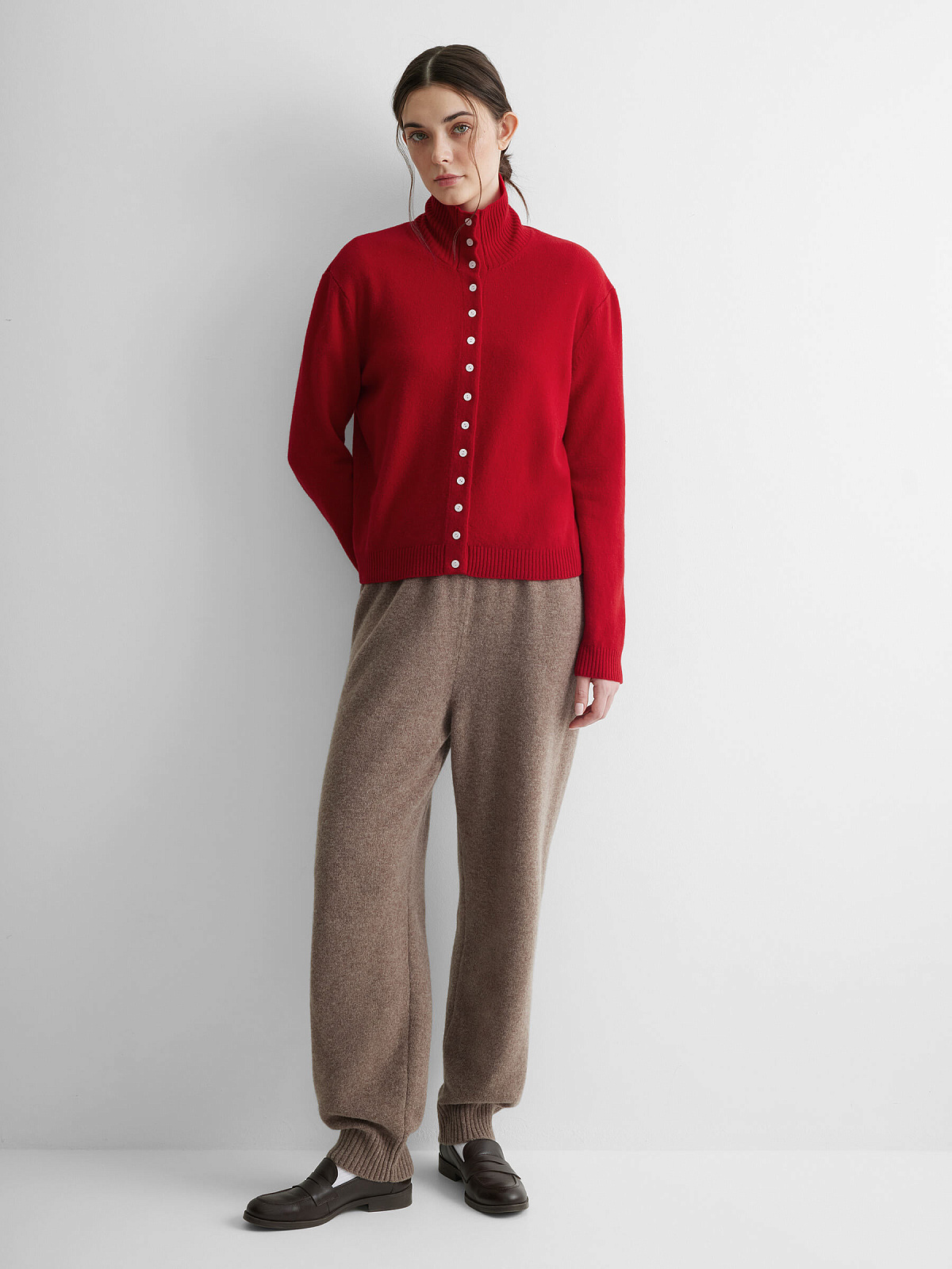 Кардиган с высоким воротником из 100% мериноса, красный
