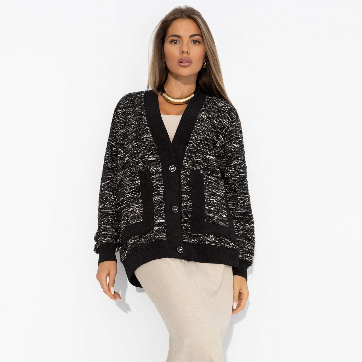 Уютный кардиган ЧАРУТТИ согревает не только тело, но и мысли, напоминая: даже смелые перемены могут быть комфортными, если делать их с собой в гармонии. Контрастные оттенки – символ баланса между прошлым опытом и будущим, которое она теперь выбирает осознанно. Кардиган свободной посадки. Застегивается на пуговицы, с карманами.