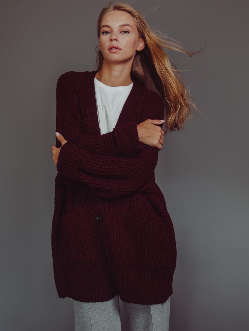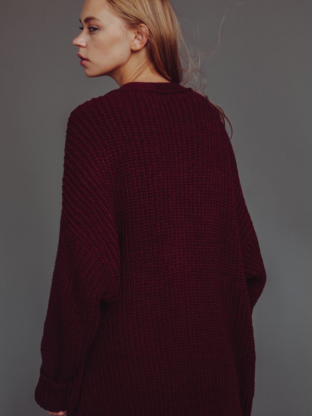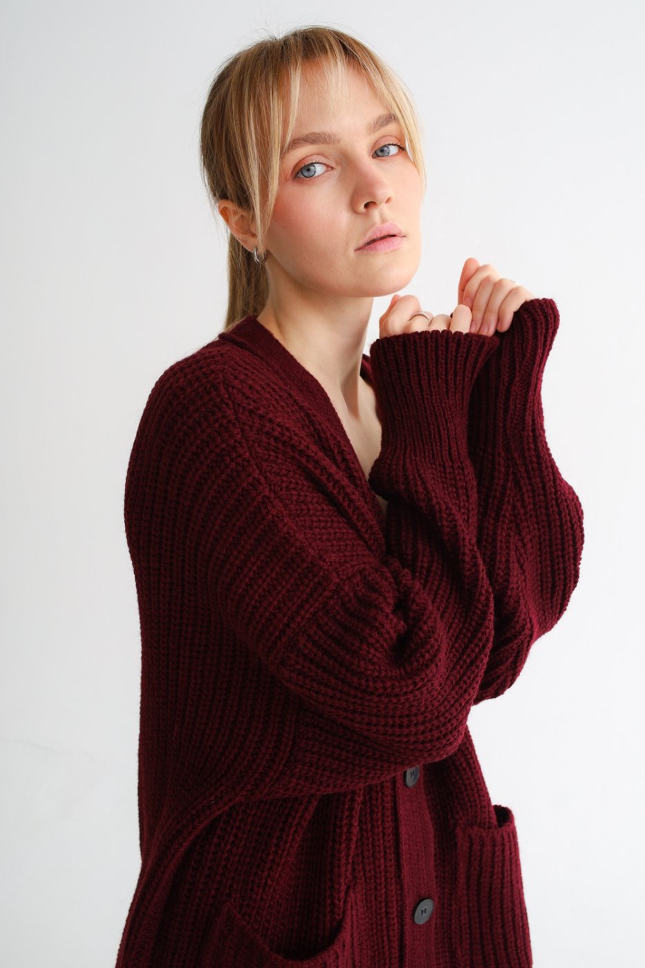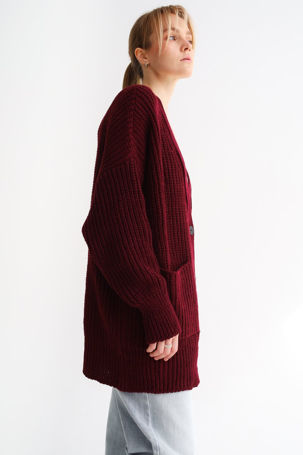 Кардиган вязаный женский over size бордо
