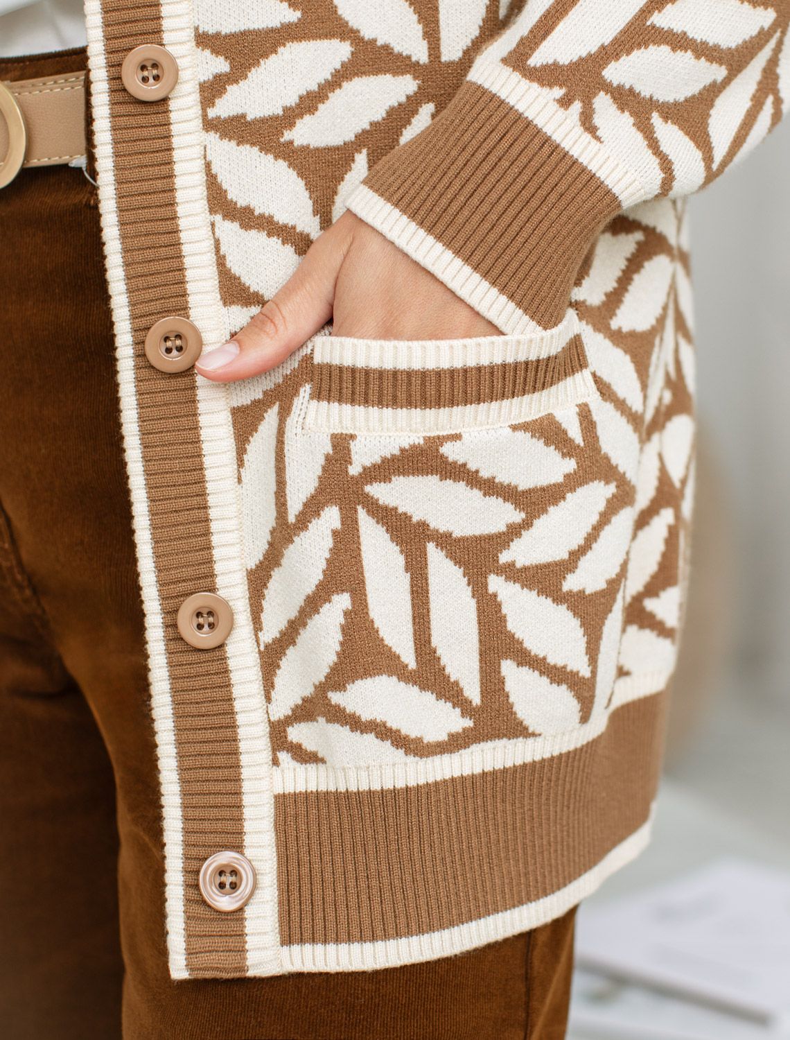 Кардиган жаккардовой вязки выполнен из нежной пряжи на основе вискозы с добавлением кашемира. Мягкая модель не раздражает кожу, приятно ощущается на теле и поддерживает комфортный микроклимат. Совет стилиста: модель гармонично впишется в любой гардероб, добавив образу выразительности. Сочетайте с однотонными брюками, юбкой, платьем или джинсами