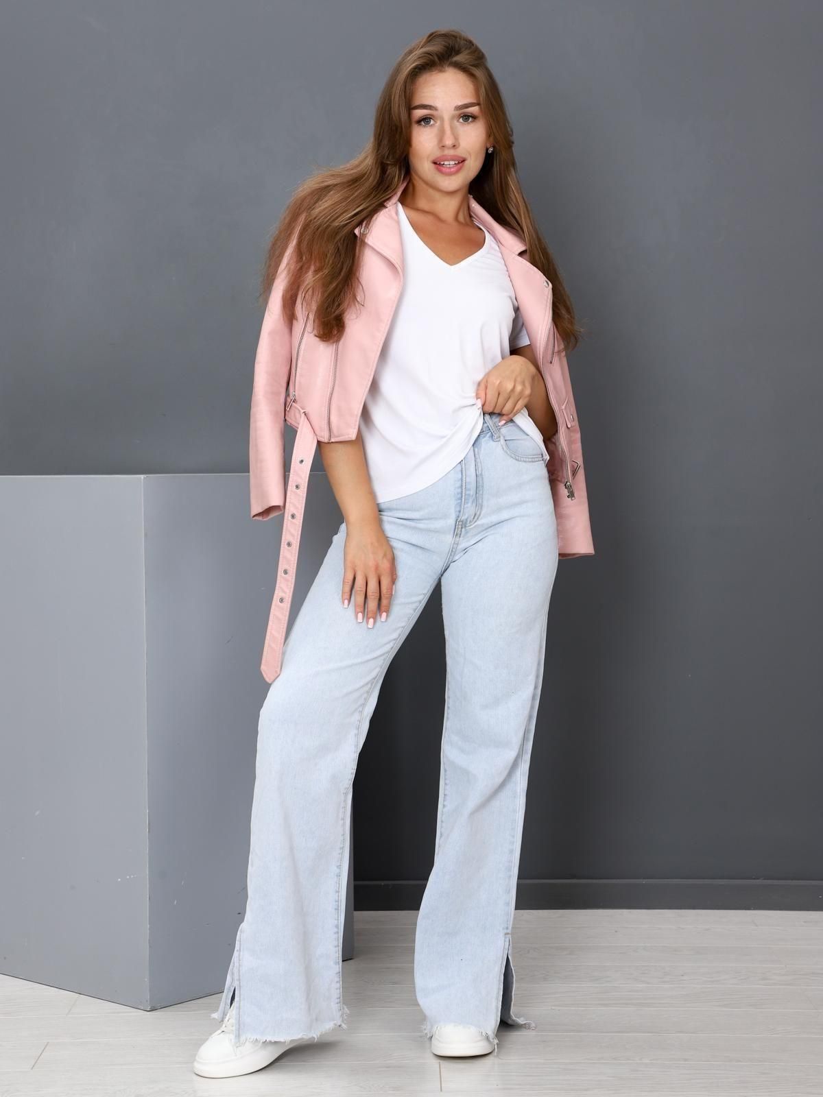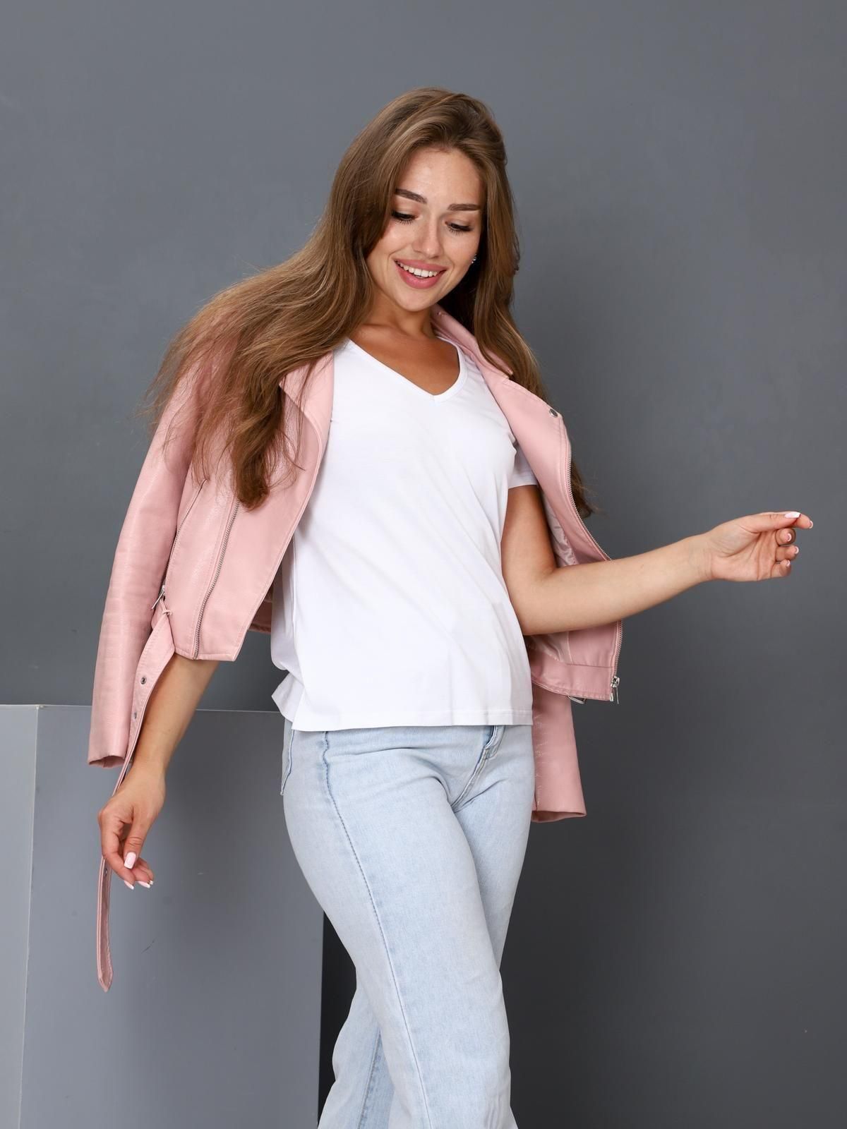 Женская футболка выполнена из трикотажного полотна "вискоза". Футболка полу прилегающего силуэта, с рукавом, горловина с глубоким V-образным вырезом, обработанным бейкой.
