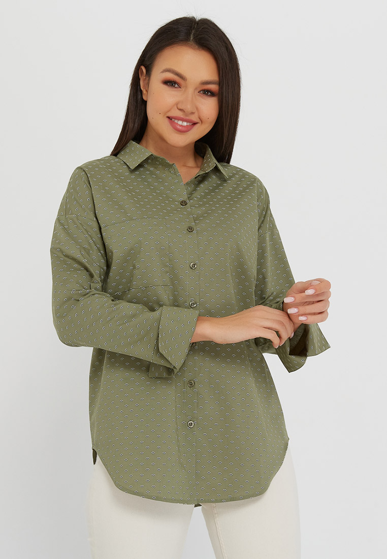 Блузка женская дл. рук. KATHARINA KROSS KK-B-0004V-оливковый.принт