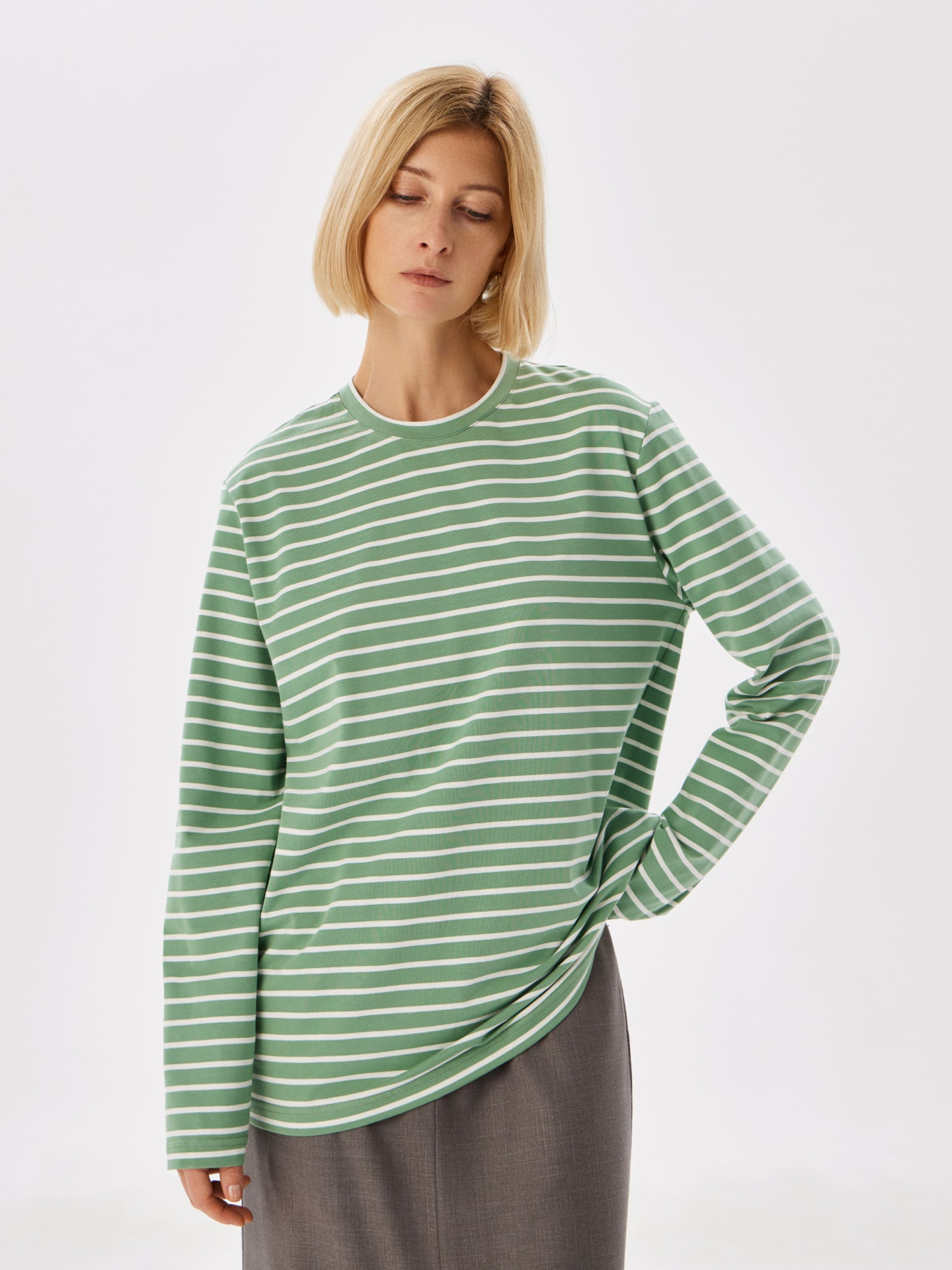 Джемпер женский KATHARINA KROSS KK-JP-0035K-TN33-оливковый,белая полоска