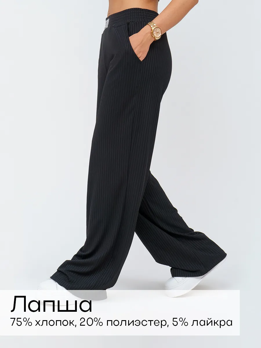 Женские брюки из ткани "лапша" — стильный и удобный выбор для вашего оптового ассортимента. Изготовленные из высококачественного материала, состоящего на 75% из хлопка, 20% полиэстера и 5% лайкры, они обеспечивают отличную воздухопроницаемость, комфорт и эластичность. Черный цвет придаёт брюкам универсальность, позволяя легко сочетать их с различными верхами. Брюки оснащены практичными карманами с отрезным бочком, что добавляет функциональности и стиля. Брендированная нашивка посередине подчеркивает качество и оригинальность изделия. Эти брюки отлично подходят как для повседневной носки, так и для более формальных случаев, что делает их идеальным выбором для оптовых закупок с высоким спросом. Убедитесь, что ваши клиенты оценят стиль и комфорт этих брюк!