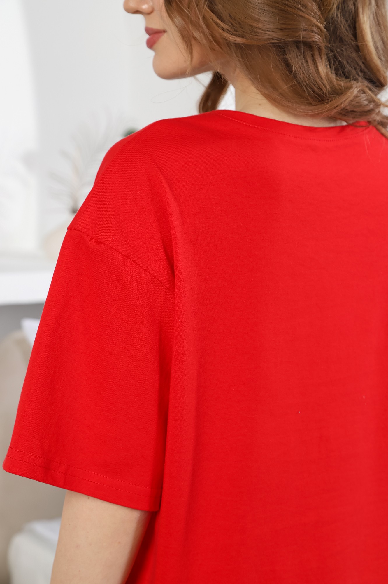 Пижама молодежная из трикотажного полотна «кулирка» в комбинации из двух видов гладкокрашенного и с набивным рисунком, состоящая из футболки и шорт. Футболка – свободного покроя из гладкокрашеного полотна, с короткими втачными рукавами, горловиной овальной формы, обработанной притачной бейкой и принтом на полочке, выполненным в технике «шелкографии».Шорты – из набивного полотна свободного покроя, на притачном поясе с эластичной тесьмой внутри.
