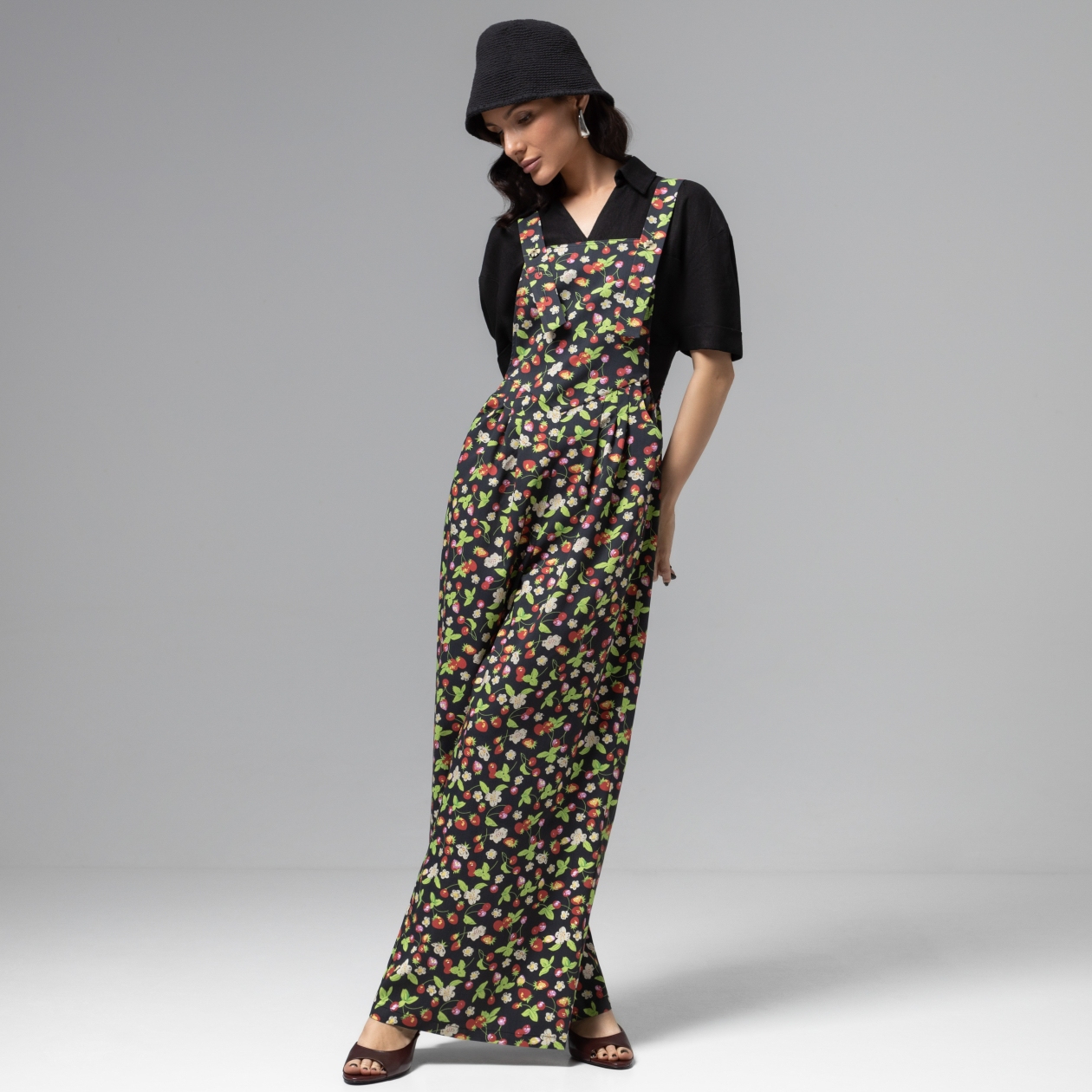 Стиль, как основной принцип жизни. Быть смелой и не бояться экспериментов, идти навстречу мечте широким шагом и оставлять место для озорства. Все это о комбинезоне ЧАРУТТИ. Комбинезон с широкими штанинами из легкой джинсы. Акцентные пуговицы на бретелях позволяют регулировать посадку и длину изделия. Логотип бренда на спинке. Комбинезон с карманами.