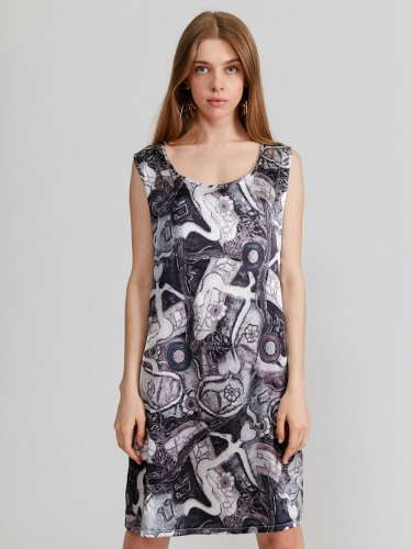 Комбинезон короткий из трикотажной ткани. Силуэт прямой, на резинке по линии талии. Без рукавов. Вырез горловины круглый, застежка-планка по центру, на пуговицы. Карманы в боковой части полочки. Ткань легкая, мягкая и очень приятная к телу. Рост модели 175 см. Изделие на модели 42р-ра. Длина изделия по спинке 42.5 см Машинная стирка при 30