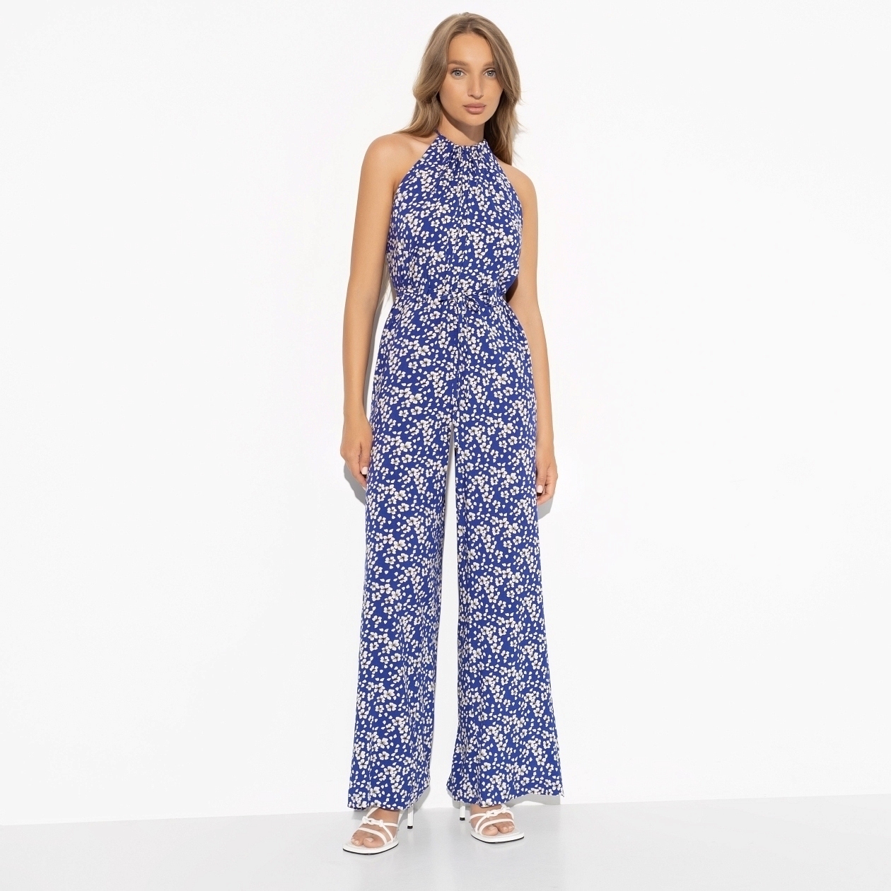 Принт с мелкими белыми цветами придаёт комбинезону лёгкость и романтичность, делая его идеальным выбором для летних прогулок, вечерних мероприятий и даже путешествий. Этот комбинезон станет незаменимым элементом гардероба ваших клиентов, предлагая им комфорт и стиль в одном изделии.