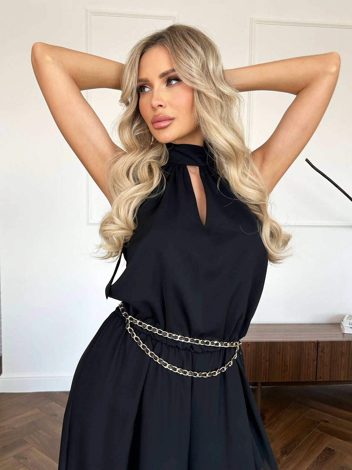 Низ комбинезона выполнен из шифона и дополнен подкладом-шортами.