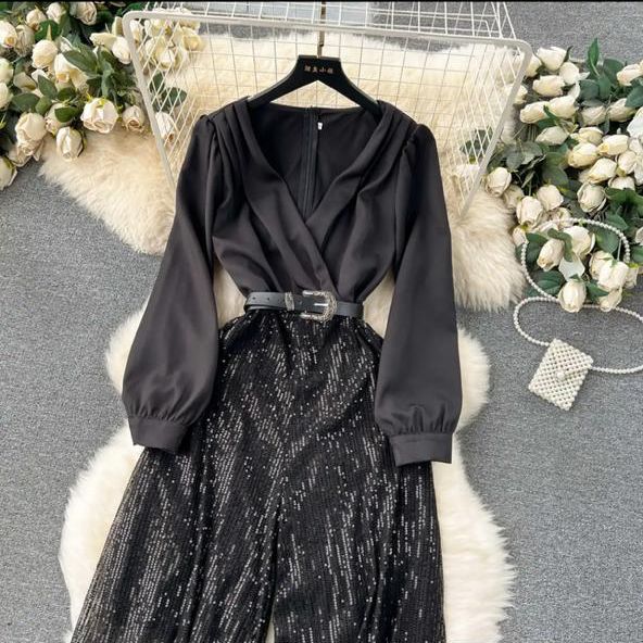 Идеальная посадка, блестящая поетка и удобная молния сзади — комфортно и эффектноодний комбинезон с подкладкой и ремнём в комплекте!