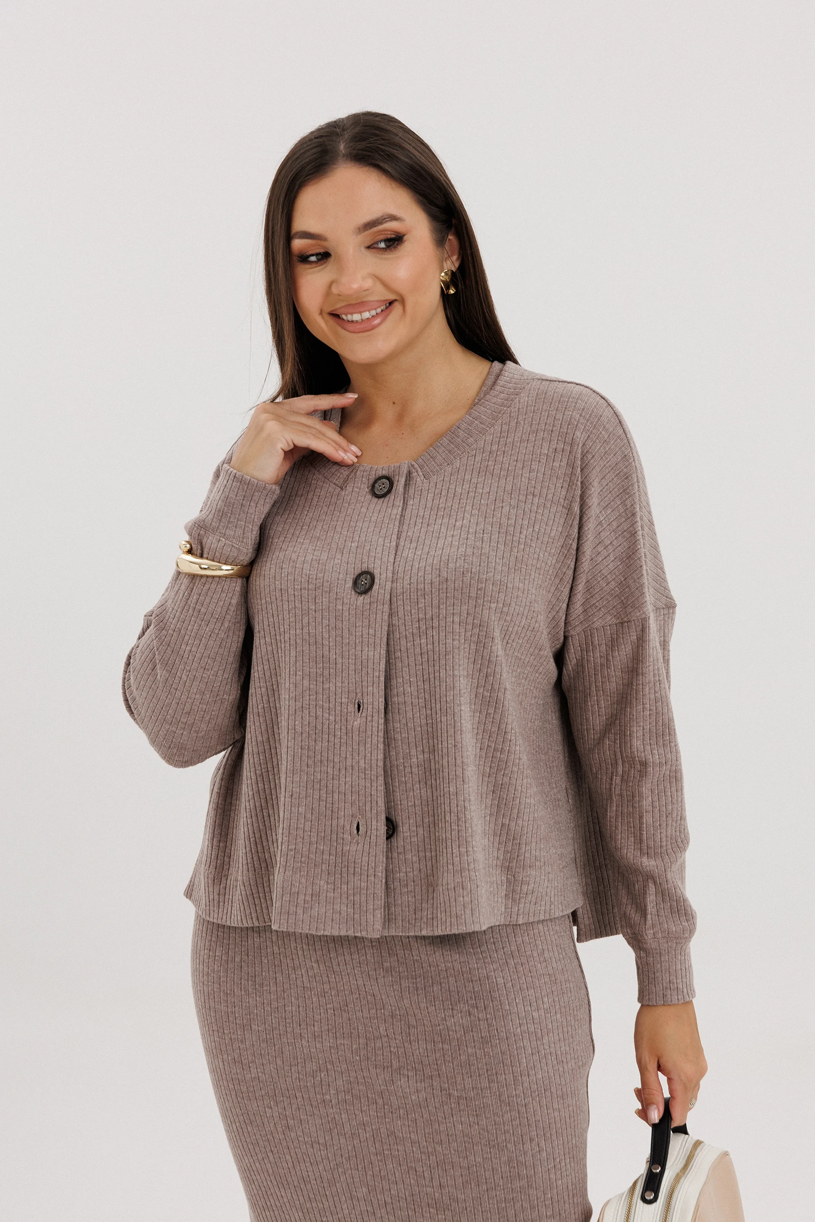 Трикотаж - это не только про зиму: ведь его мы носим круглый год, но именно осенью и зимой он выходит на новый уровень. Такой комплект создаёт трендовые образы без лишних усилий и даёт возможность подчеркнуть свой стиль. И это - кардиган и платье.