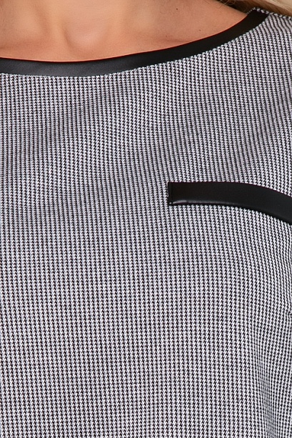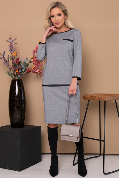 Комплект из плотного,хорошо держащего форму трикотажного полотна.Блузон свободного силуэта с отделкой экокожа и юбка карандаш.