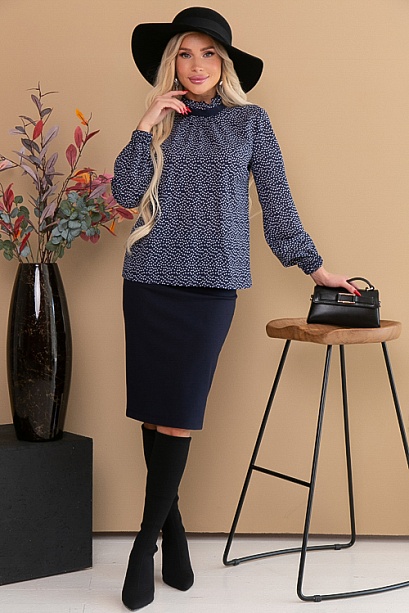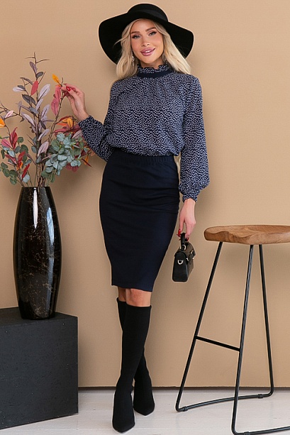 Комплект из блузки и юбки.Блузка из креп шифона,ворт стойка с рюшей.Юбка карандаш из трикотажного полотна джерси.