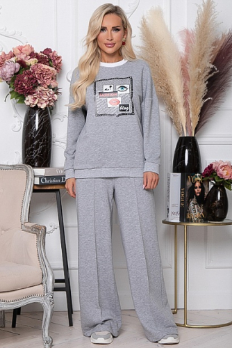 * Брючный комплект из комфортной вискозной костюмной ткани. Жакет прямого силуэта с центральной застежкой на две пуговицы.Воротник отложной с лацканами.Брюки свободного, прямого силуэта с эластичной резиной по поясу.В боковых швах функциональные карманы.
