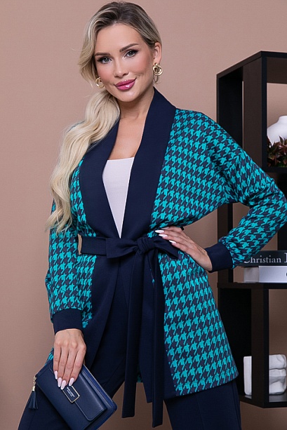 Комплект брючный из трикотажного полотна,состоящий из кардигана и брюк и поясом в комплекте.