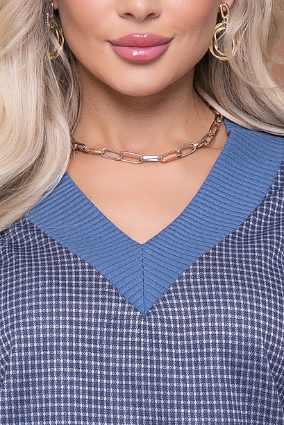 Брючный комплект из жаккардового трикотажного полотна в мелкую клеточку.Джемпер свободного силуэта  со спущенным плечом и контрастной отделкой трикотажной рибаной.Брюки палаццо с высокой посадкой и эластичной резиной в поясе.