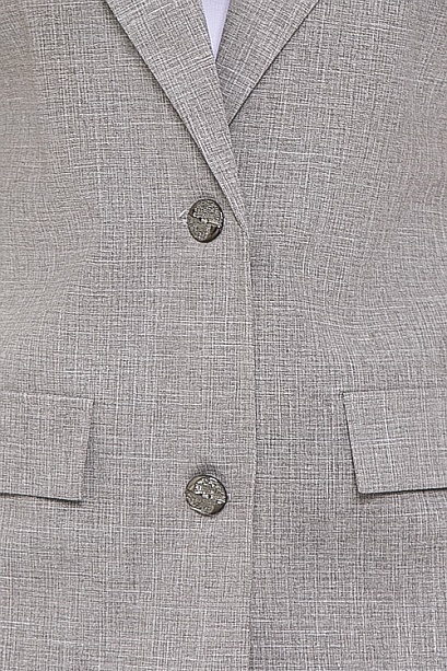 * Комплект из легкой костюмной ткани.Жилет  свободного силуэта на подкладе с  центральной застежкой на две пуговицы Воротник отложной с лацканами.По переду прорезные карманы с клапанами, по бокам разрезы.Брюки свободного,прямого  силуэта.  удобную посадку по талии обеспечивает эластичный пояс на резинке с кулиской,В боковых швах функциональные карманы.