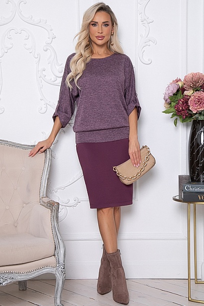 Комплект из блузки и юбки.Блузка из трикотажного полотна с цельнокроеными рукавами с патами.По низу притачной пояс.Юбка карандаш из трикотажного полотна джерси с эластичной резиной в поясе.