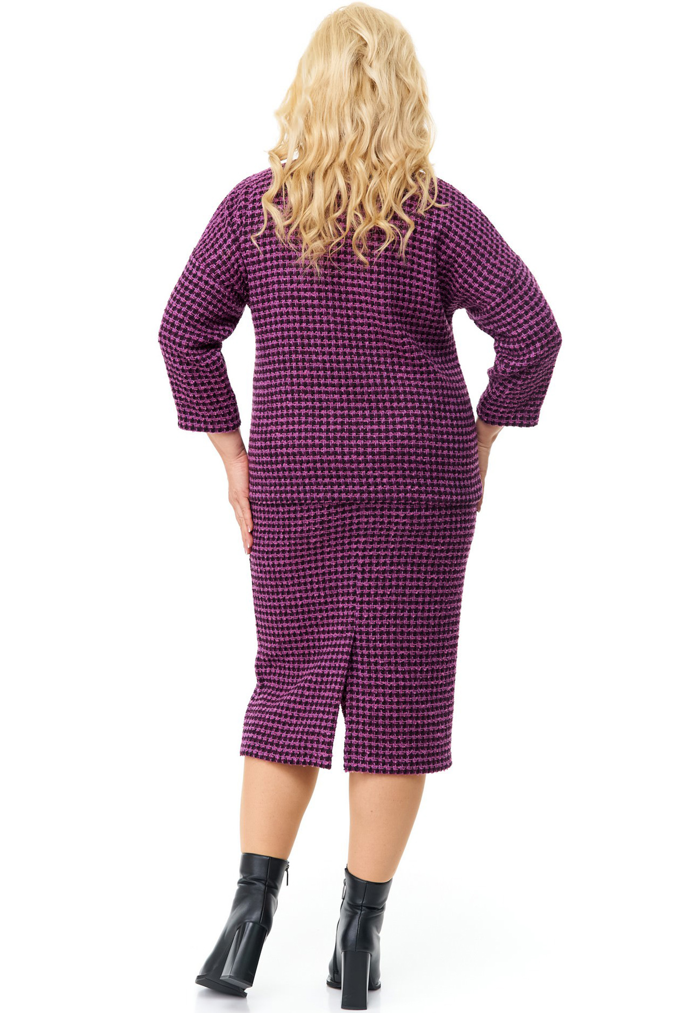 Модель: Анастасия 1027 фуксия Рос..показатьт: 164 см (девушка на фото ростом 170см) Сезон: Осень-Зима Тип ткани: Полиэстер 80%, Шерсть 20%Комплект женский 2-х предметный ( блузка, юбка) из текстильной ткани. Блуза прямого силуэта со спущенным плечом, низ по полочке фигурный, симметричный. По полочке идет кокетка в виде подреза, отделка в виде пуговиц и накладной карман (из эко-кожи). По спинке средний шов, рукав 3/4 длины. Юбка зауженная к низу, по полочке идет ассиметричный подрез с пуговицами. По спинке средний шов, шлица , пояс отрезной с резинкой.