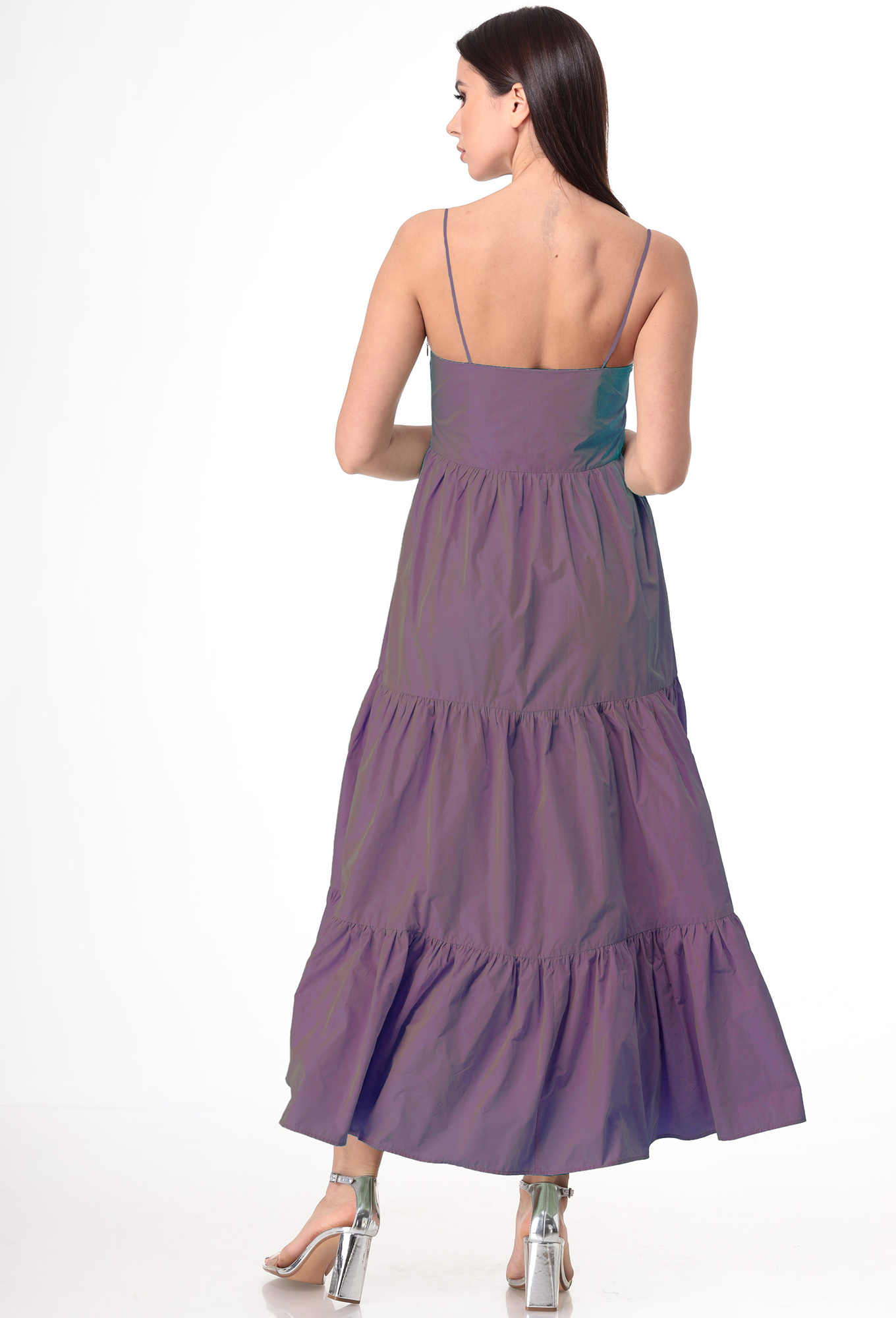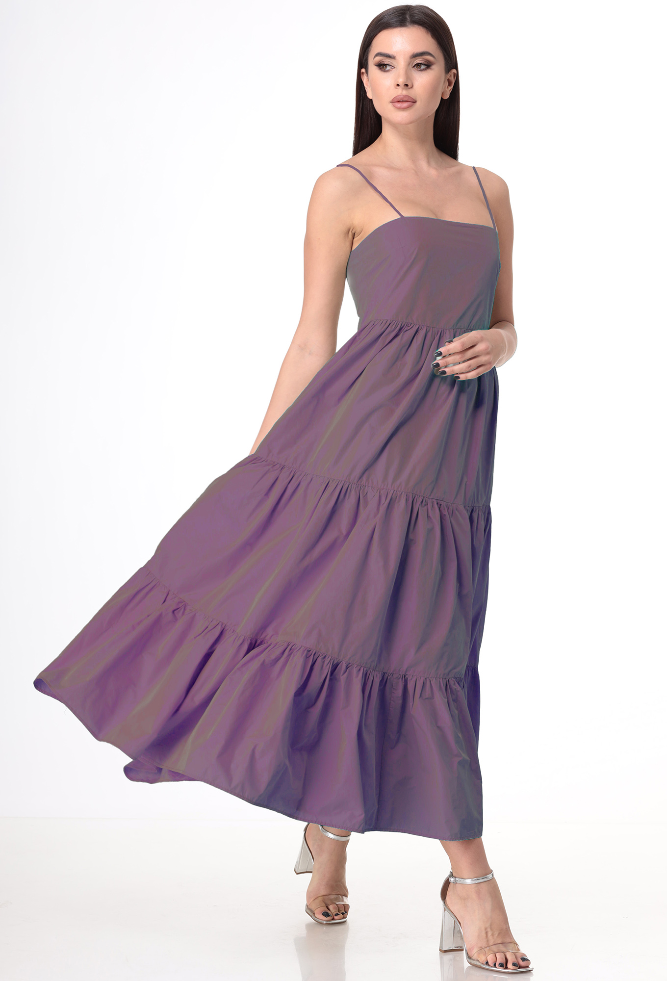 Модель: Анастасия 630 фиолетовый ..показатьРост: 164 см (девушка на фото ростом 170см) Сезон: весна-лето Тип ткани: Платье-полиэстер 100% Майка- вискоза 65%пэ-32% Спандекс-3%Комплект женский 2-х предметный (майка и платье-сарафан). Платье-сарафан на брителях, в левом боковом шве молния. По талии отрезное и 3 волана присобраны. Майка прилегающего силуэта, рукав короткий. По горловине и низу рукава майки идет бейка. Длина платья: 120см. Длина майки: 60см.Рост: 164 см (девушка на фото ростом 170см)
