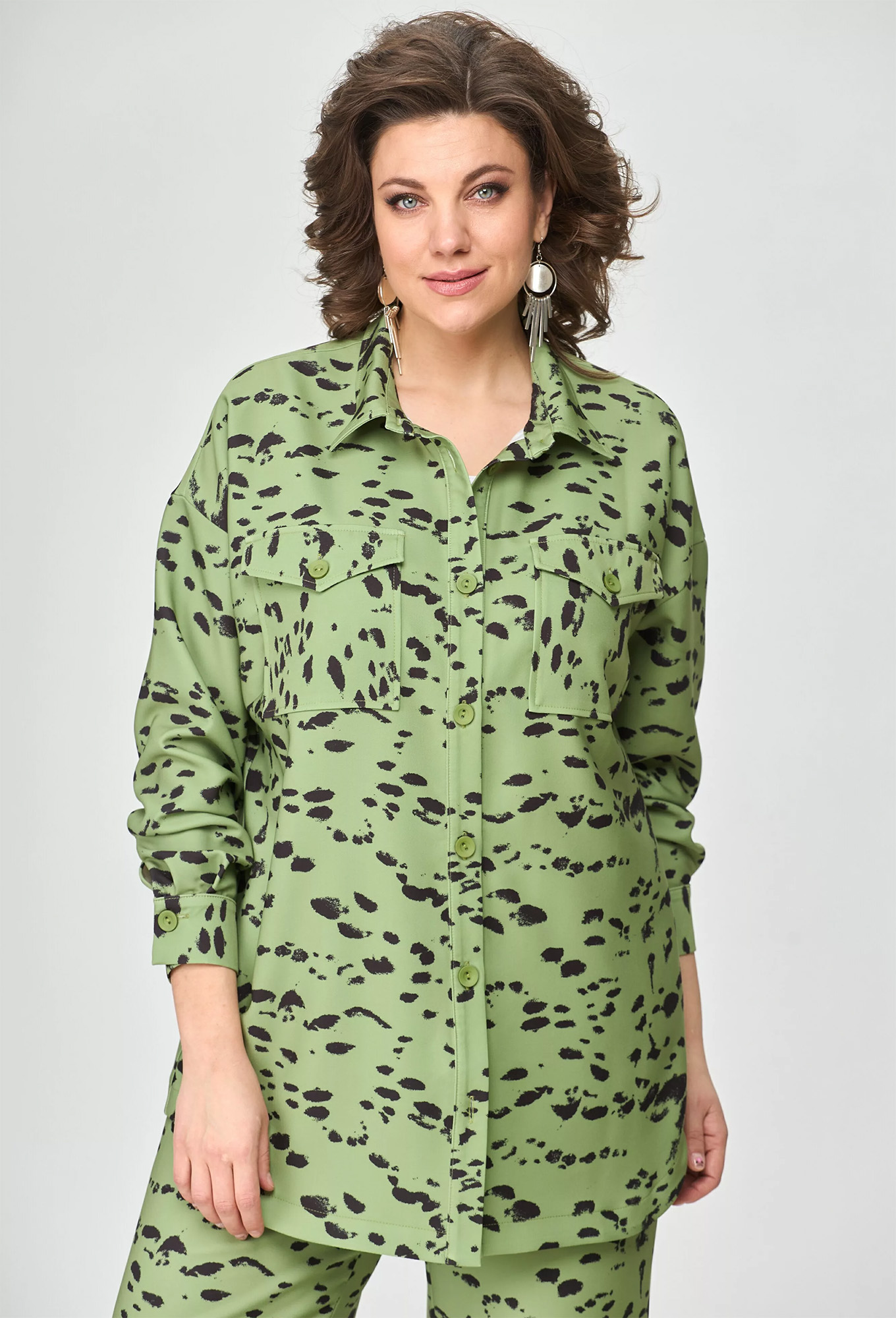 Модель: Анастасия Мак 1091 олива ..показатьРост: 164 см (девушка на фото ростом 170см) Сезон: Весна-Лето Тип ткани: 95% ПЭ, 5% СпандексКостюм выполнен из ткани с набивным рисунком. Костюм состоит из рубашки и брюк. Рубашка прямого силуэта._x000D_