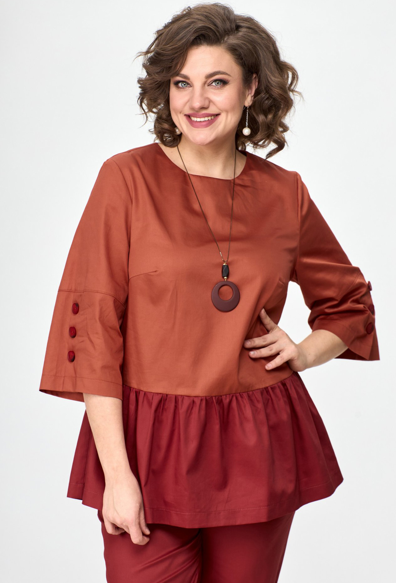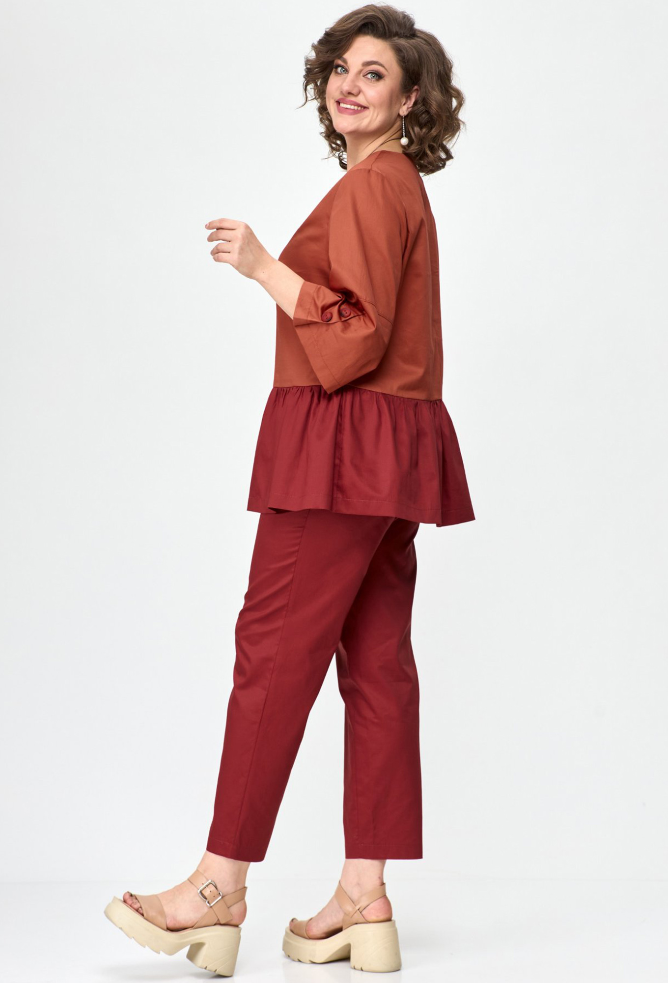 Модель: Анастасия Мак 1094 терракот <..показатьli>Рост: 164 см (девушка на фото ростом 170см) Сезон: Весна-Лето Тип ткани: 100% хлопокКостюм состоящий из блузки и брюк выполнен из однотонной ткани в сочетании двух цветов._x000D_