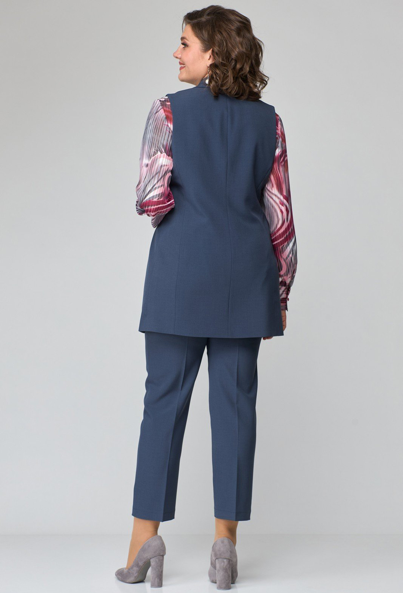 Длина жилета в 58р - 80,5 см, длина брюк по боковому шву без пояса - 97,3 см>Рост: 164 см (девушка на фото ростом 170см) Сезон: Круглогодичный Тип ткани: 94% ПЭ, 6% спандекс
