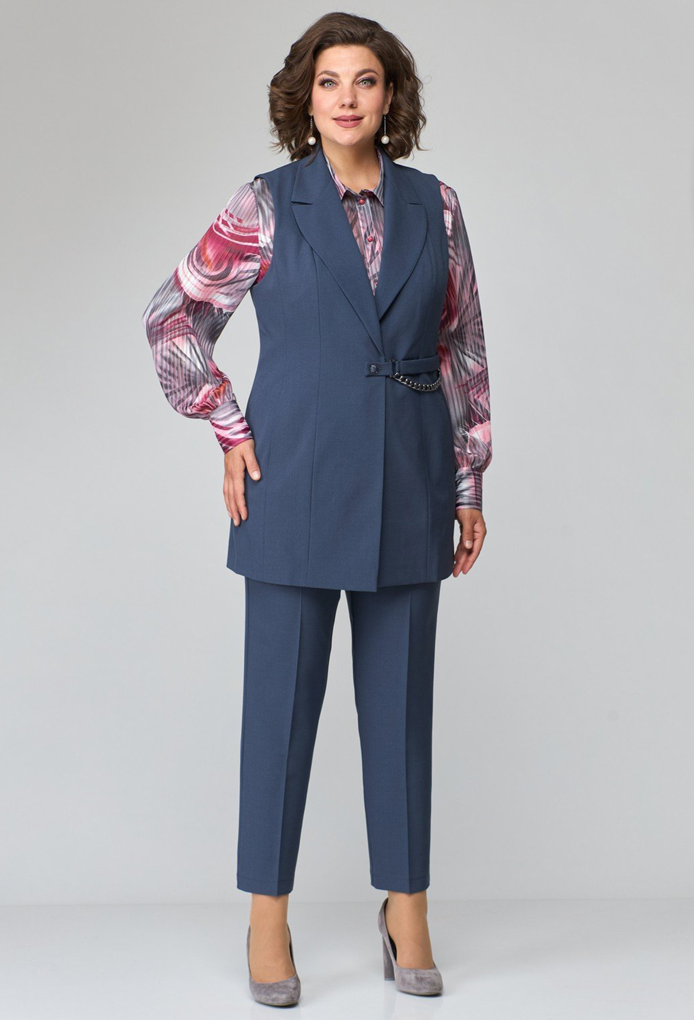 Модель: Анастасия Мак 1115 графит ..показать>Рост: 164 см (девушка на фото ростом 170см) Сезон: Круглогодичный Тип ткани: 94% ПЭ, 6% спандексКостюм состоящий из жилета и брюк, выполнен из однотонной ткани. _x000D_