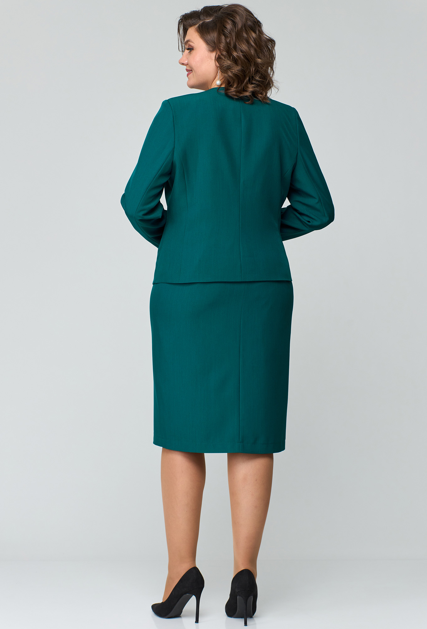 Модель: Анастасия Мак 1117 зеленый ..показатьi>Рост: 164 см (девушка на фото ростом 170см) Сезон: Круглогодичный Тип ткани: Полиэстер 100%Костюм состоящий из жакета и юбки выполнен из однотонной ткани. Костюм на подкладке._x000D_