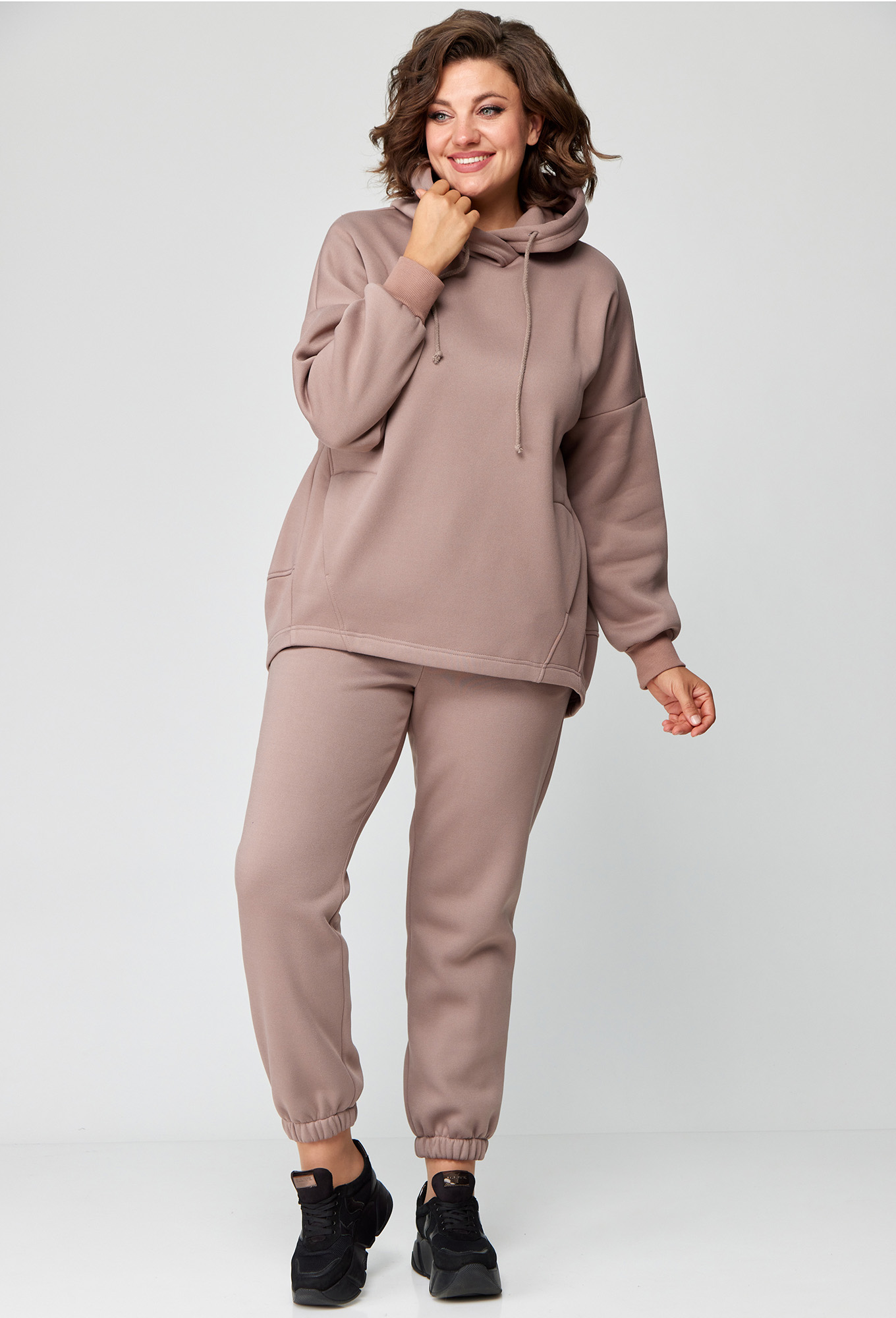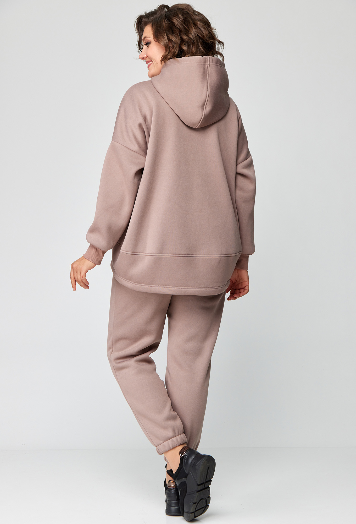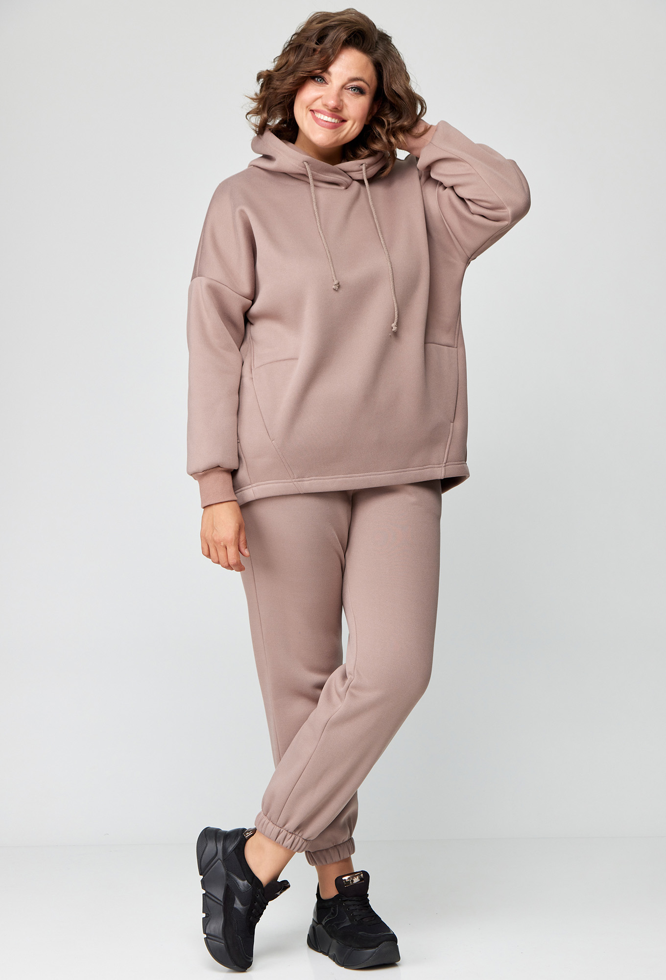 Модель: Анастасия Мак 1136 бежевый ..показатьi>Рост: 164 см (девушка на фото ростом 170см) Сезон: Осень-Зима Тип ткани: 72% Хлопок, 26% ПЭ, 2% эластанКостюм женский, состоящий из худи и брюк, выполнен из трикотажного полотна с изнаночной стороны на флисе. Худи свободного, объемного силуэта. Полочка худи с подрезами, горловиной круглой формы с капюшоном. Верхняя часть спинки цельная, с переходящими боковыми швами на полочку. Нижняя часть спинки притачная, изогнутой формы, за счет чего образуется объем. Рукав одношовный, длинный, на притачной манжете по низу.