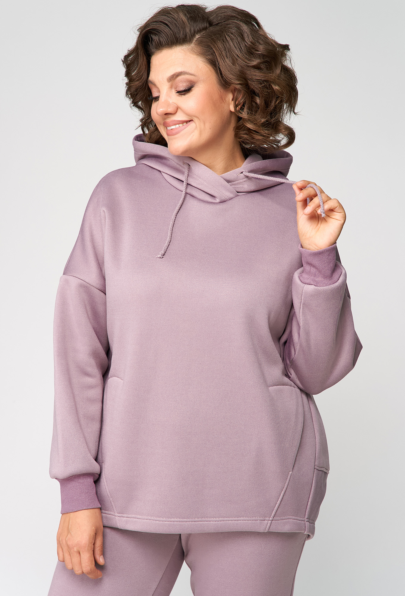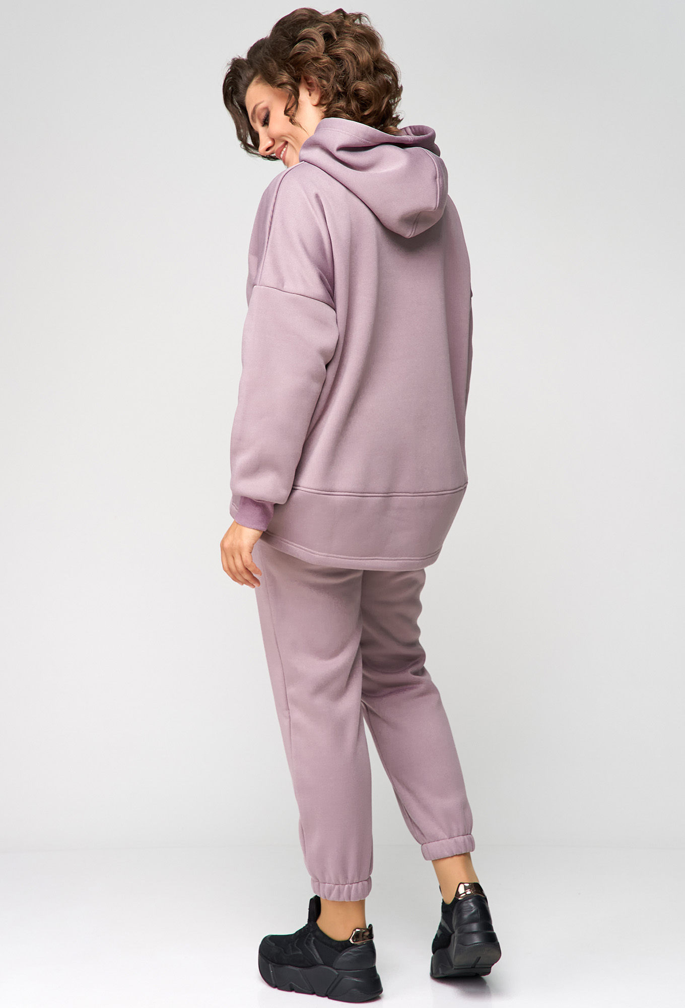 Модель: Анастасия Мак 1136 пыльная роза..показатьi> Рост: 164 см (девушка на фото ростом 170см) Сезон: Осень-Зима Тип ткани: 72% Хлопок, 26% ПЭ, 2% эластанКостюм женский, состоящий из худи и брюк, выполнен из трикотажного полотна с изнаночной стороны на флисе. Худи свободного, объемного силуэта. Полочка худи с подрезами, горловиной круглой формы с капюшоном. Верхняя часть спинки цельная, с переходящими боковыми швами на полочку. Нижняя часть спинки притачная, изогнутой формы, за счет чего образуется объем. Рукав одношовный, длинный, на притачной манжете по низу.