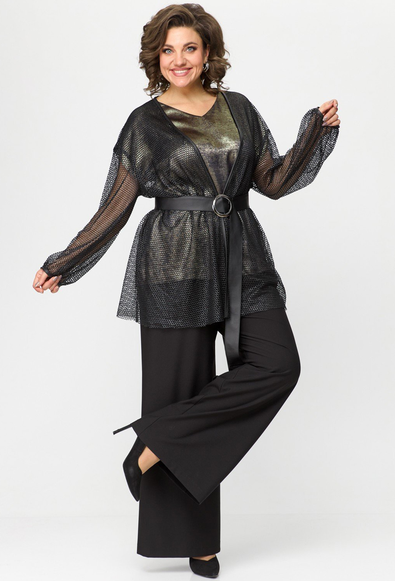 Модель: Анастасия Мак 1149 черный золото..показатьli> Рост: 164 см (девушка на фото ростом 170см) Сезон: Круглогодичный Тип ткани: Топ- 100% ПЭ Кардиган- 94% ПЭ, 6% спандексБрюки- 74% ПЭ, 24% вискоза, 2% спандексКомплект женский состоит из блузки, кардигана и брюк.